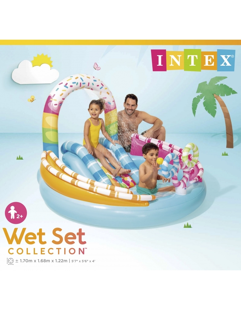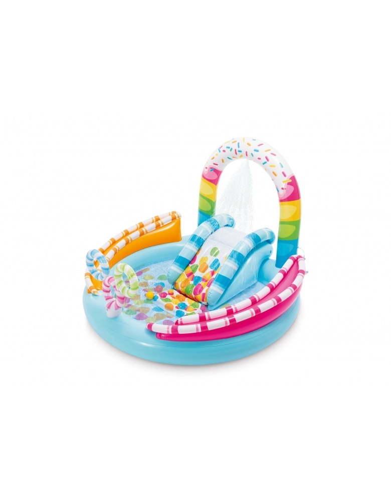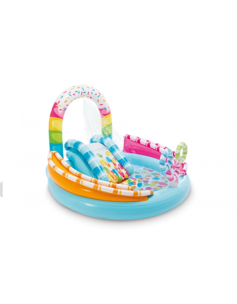 A piscina infantil inflável Candy Fun da Intex, é a piscina mais deliciosa que você encontrará para seus filhos. Feita a partir de Vinil resistente, ela é ideal para os pequenos se divertirem na água em dias de sol, com um tobogã de doces e colchão amortecedor para maior conforto ao deslizar.