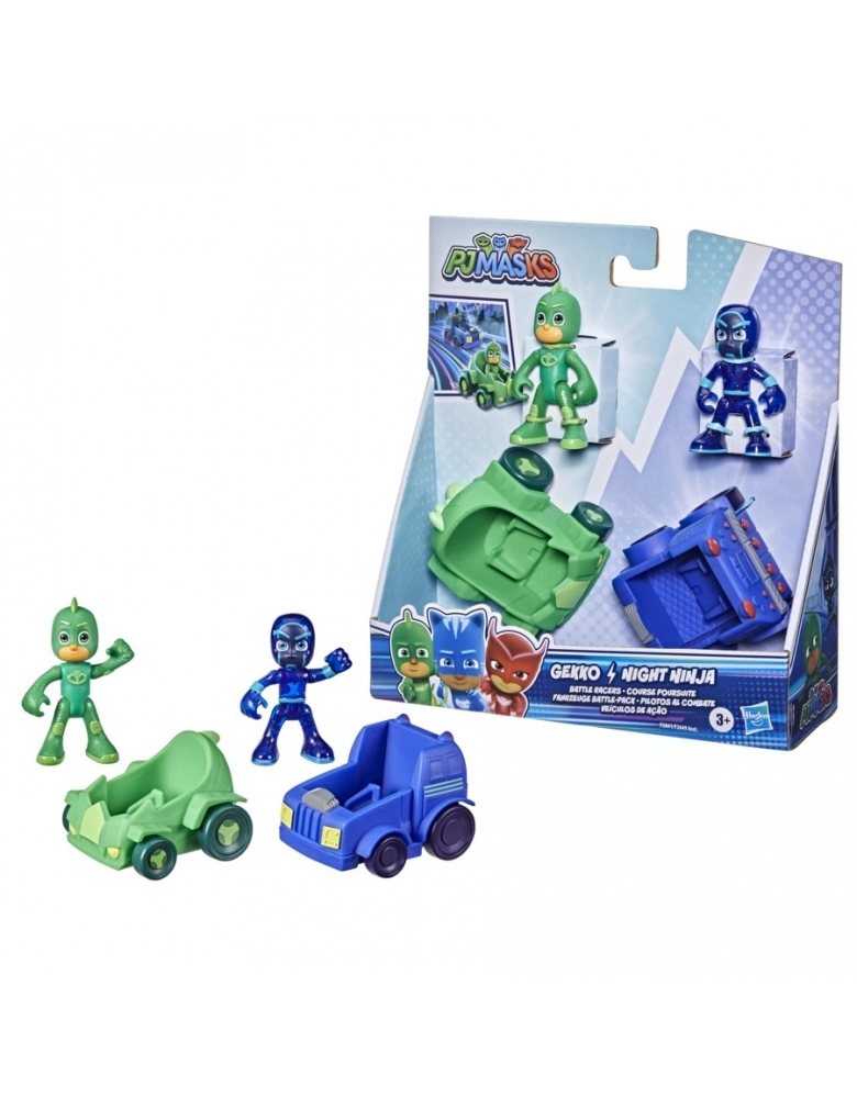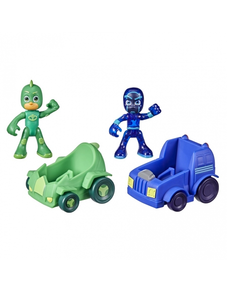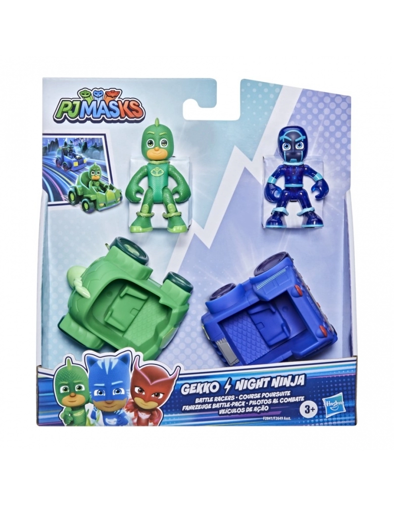 Os Veículos de Ação PJ Masks Lagartixo x Ninja noturno estão prontos para a largada! Este kit inclui 2 miniveículos PJ Masks e 2 figuras PJ Masks para que as crianças possam se divertir em incríveis corridas! As figuras são compatíveis com os brinquedos PJ Masks que possuem Hero ID (vendidos separadamente e sujeitos à disponibilidade) e irão emitir sinais luminosos, sonoros ou ambos de acordo com cada figura de 7,5 cm. Excelente presente de aniversário ou outras celebrações para meninos e meninas a partir dos 3 anos que adoram aventuras dos super-heróis e vilões.