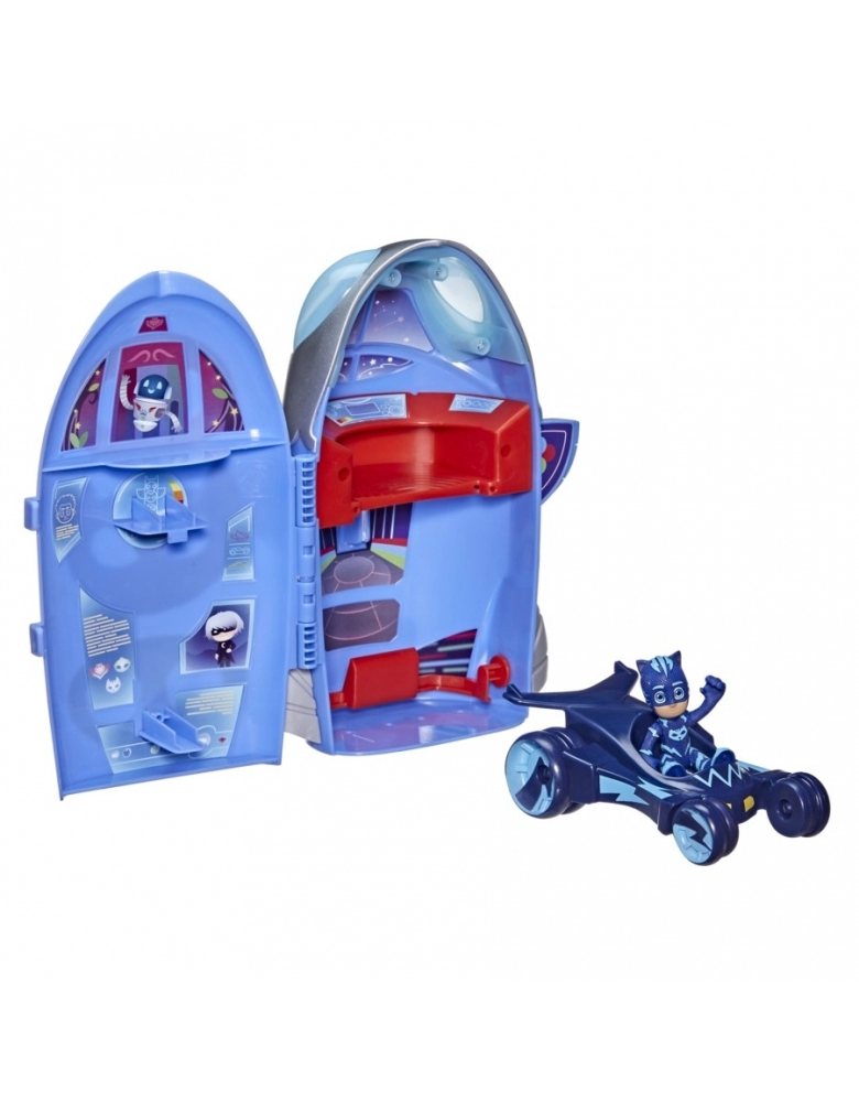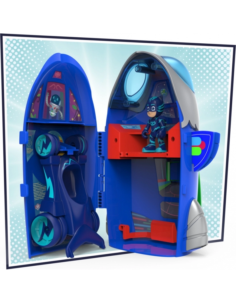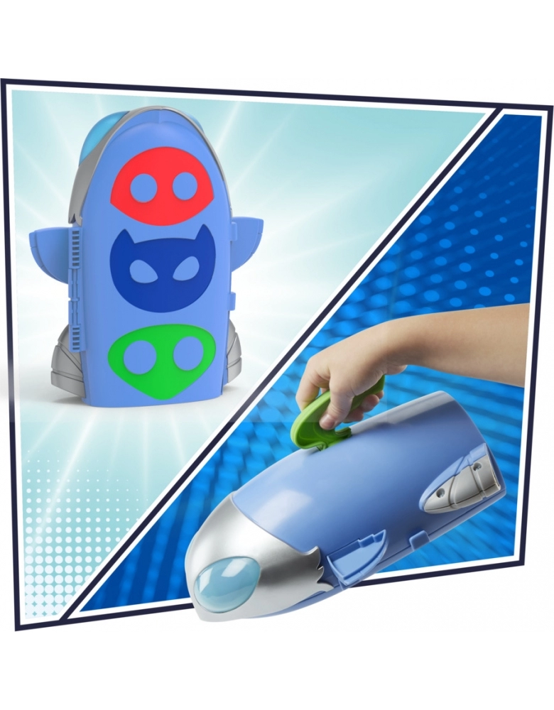 O modo quartel-general, as crianças podem se imaginar planejando a próxima missão com o computador decorativo e o lançador de veículo. Quando o brinquedo está fechado, ele vira o foguete dos PJ Masks.