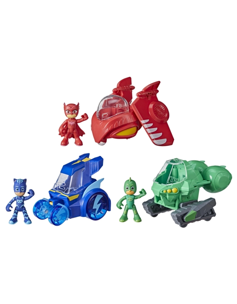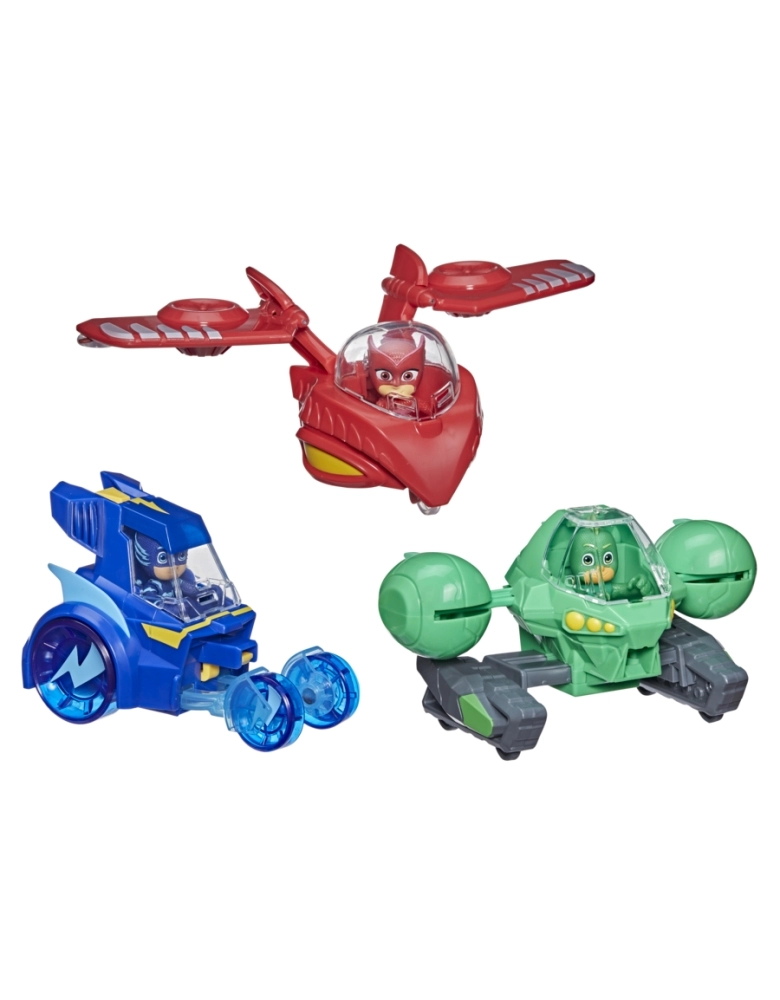 Com 3 veículos que se conectam e 3 figuras PJ Masks, o kit de Jato 3 em 1 traz várias maneiras de brincar. Inspirado na série PJ Masks, os veículos Felinomóvel, Planador Coruja e Lagartixomóvel podem se conectar para formar um jato. O kit possui um encaixe simples e fácil para crianças a partir dos 3 anos. As figuras articuladas Menino Gato, Lagartixo e Corujita cabem dentro dos veículos. Figuras compatíveis com os brinquedos PJ Masks que possuem Hero ID (vendidos separadamente e sujeitos à disponibilidade). Reconhecem e reagem às figuras PJ Masks compatíveis.