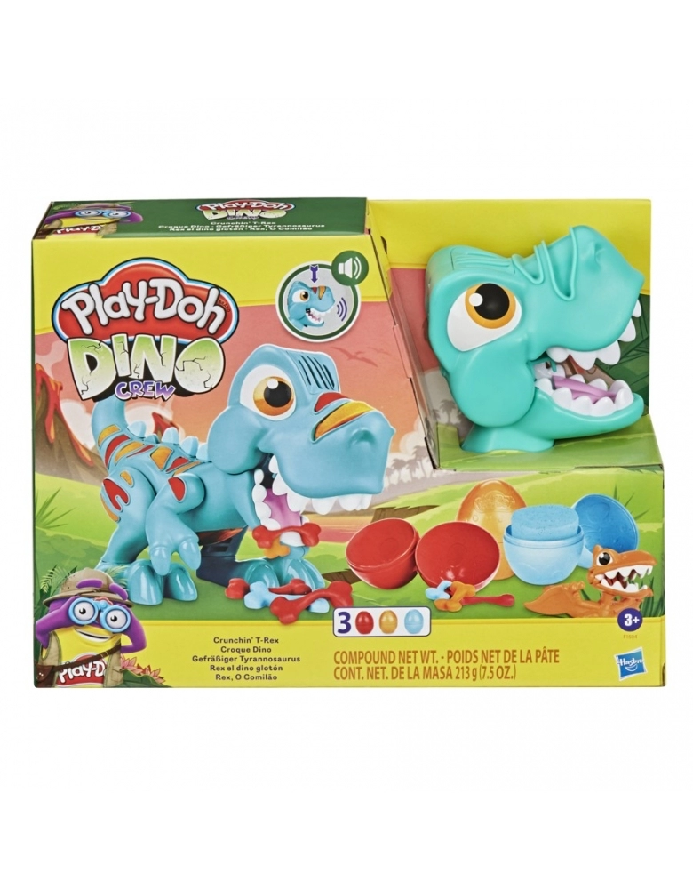 Muita diversão com este Tiranossauro Rex de brinquedo para criança a partir dos 3 anos. As crianças podem imaginar aventuras pré-históricas com este dinossauro verde, figura de pterodátilo e 3 ovos recheados com 71 g de massa atóxica Play-Doh. O T-Rex emite sons divertidos de dinossauros. Basta colocar a massa Play-Doh na boca do dinossauro para ele morder e emitir sons. É muito engraçado ver pedaços de Play-Doh caírem na barriguinha do dinossauro e depois saírem como caquinha. É um excelente presente para meninos e meninas a partir dos 3 anos.