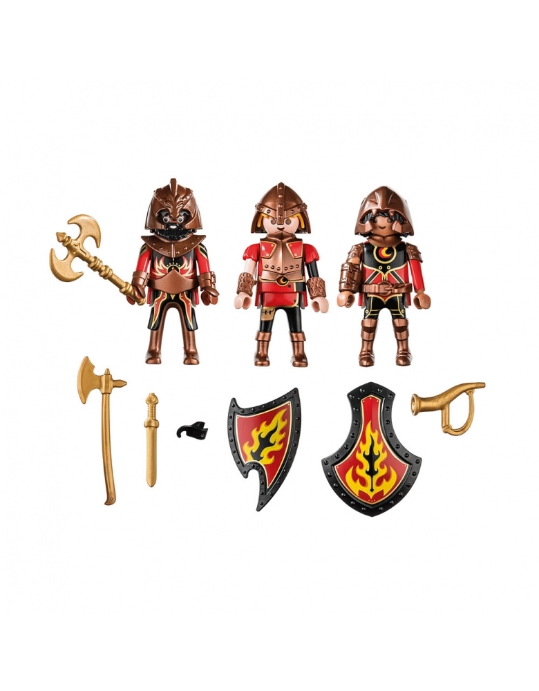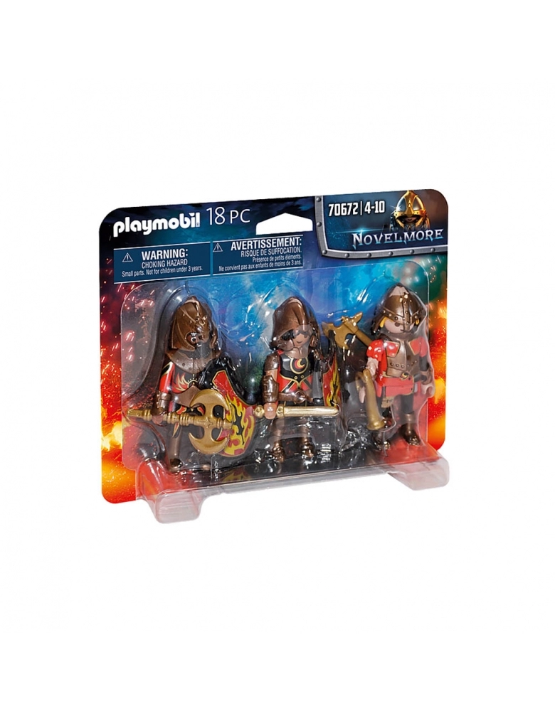 Com os 3 Cavaleiros Burnham Raiders, o exército de fogo pode ser aumentado. Os Burnham Raiders são ferozes. Repetidamente, eles tramam planos ambíguos para assumir o reino de Novelmore. Até os dentes armados com espadas e machados, deve-se pensar duas vezes antes de enfrentar esses companheiros assustadores. Os Knights of Novelmore deveriam estar no topo quando os Burnham Raiders atacarem! O conjunto de jogos inclui três Burnham Raiders com armadura e capacete, espada, eixo duplo e outros acessórios.
