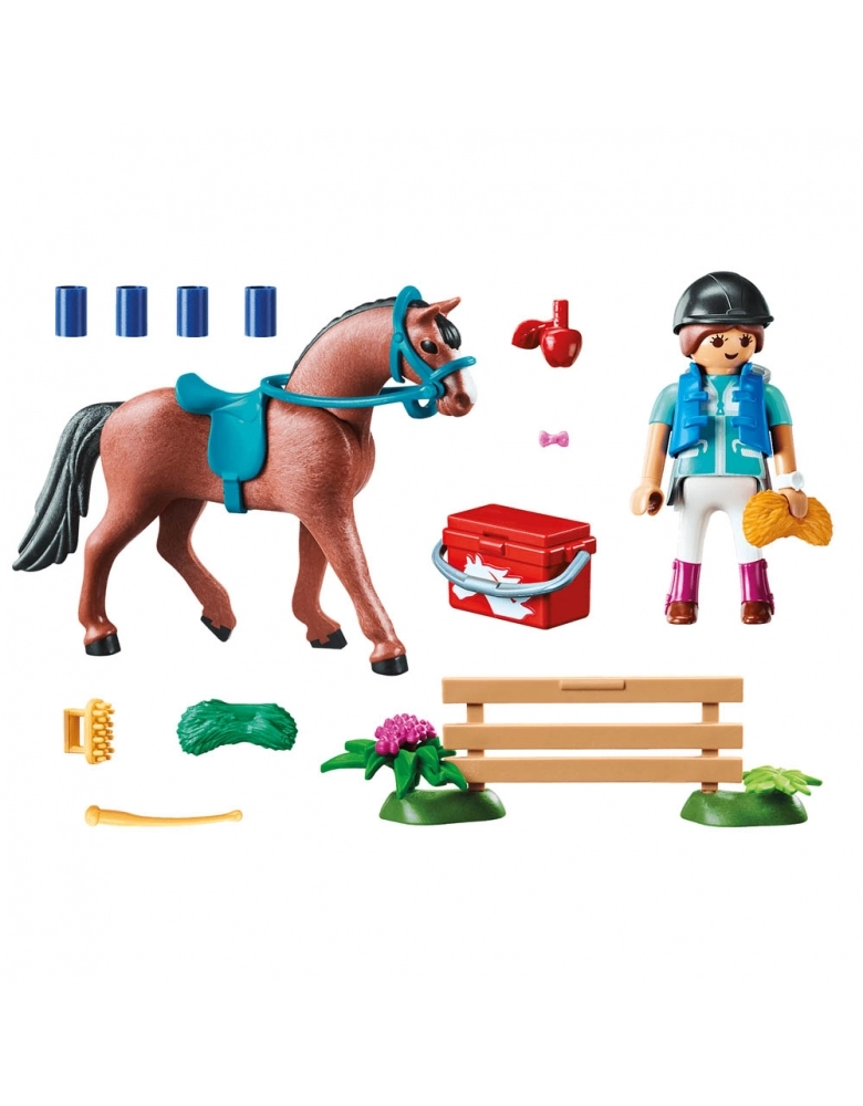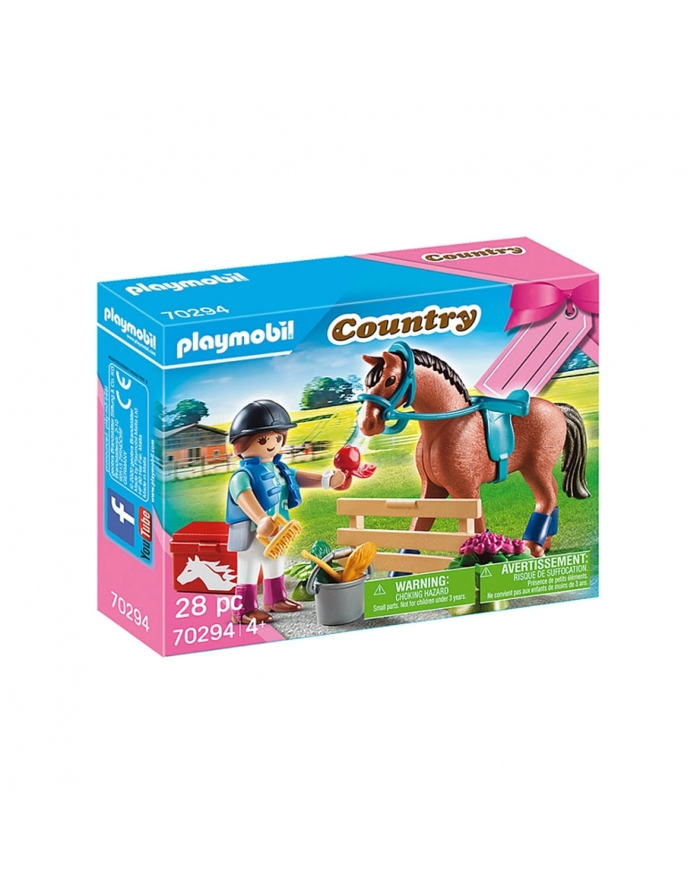O cavaleiro cuida de seu amado cavalo com devoção todos os dias. Os dois são inseparáveis e já viveram muitas aventuras juntos. O cavalo relincha em antecipação quando a garota coloca a sela nele. Agora está de volta para cavalgar na natureza. Um conjunto de jogos perfeito para os fãs de passeios a cavalo que amam animais. Os conjuntos de presente PLAYMOBIL são ideais como presente para a próxima festa de aniversário das crianças, como lembrança ou como reconhecimento por um exame aprovado. A embalagem alegre para presente economiza papel de embrulho e pode ser etiquetada individualmente com nomes.