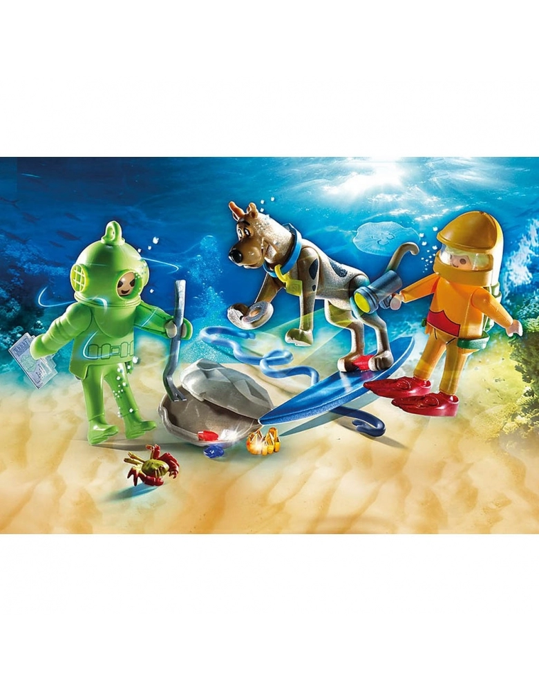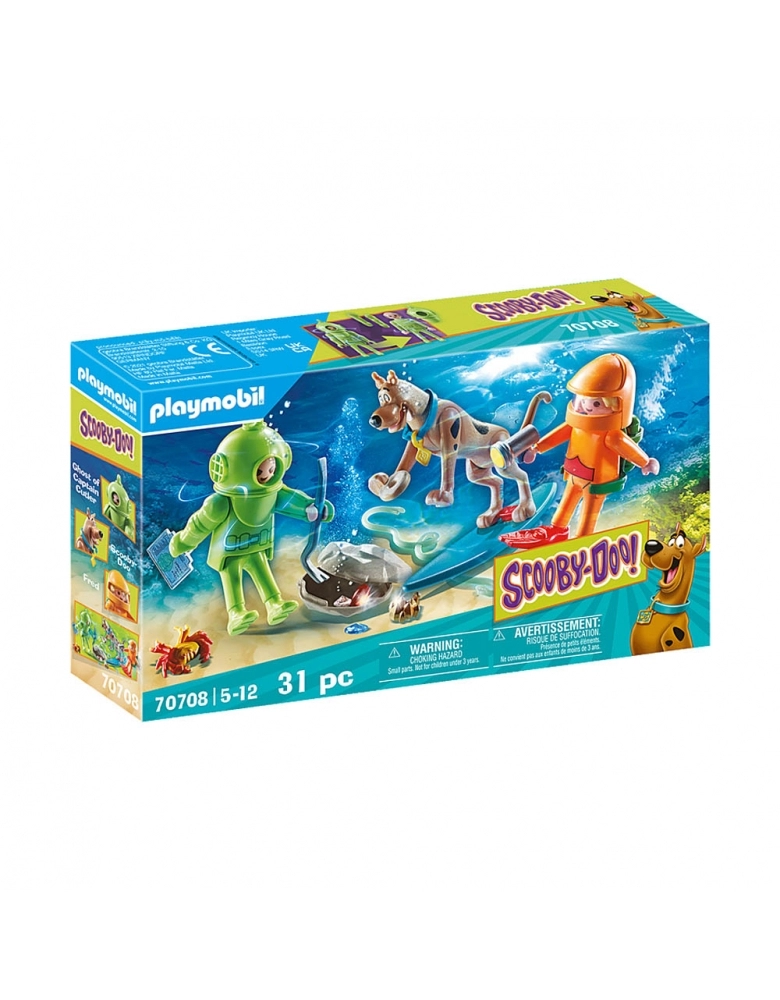 Você pode tirar a máscara do fantasma! Scooby na prancha e Fred com roupas de mergulho que você pode colecionar! SCOOBY-DOO! histórias sobre o espírito do Capitão Cutler levam Scooby-Doo e Fred para o fundo do mar! Fred tem equipamento especial de mergulho e Scooby segue o espírito flutuante em sua prancha de surfe. Ele está tentando obter suas joias escondidas. Juntos, Scooby e Fred irão capturar o fantasma para revelar seu segredo. Pode-se tirar a máscara da figura e revelar a verdadeira identidade do mergulhador. O conjunto inclui Scooby-Doo, Fred, o fantasma do Capitão Cutler, uma carta fantasma, uma prancha de surf, um tesouro, equipamento de mergulho e outros acessórios