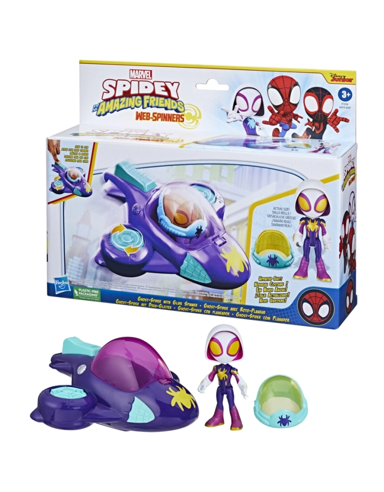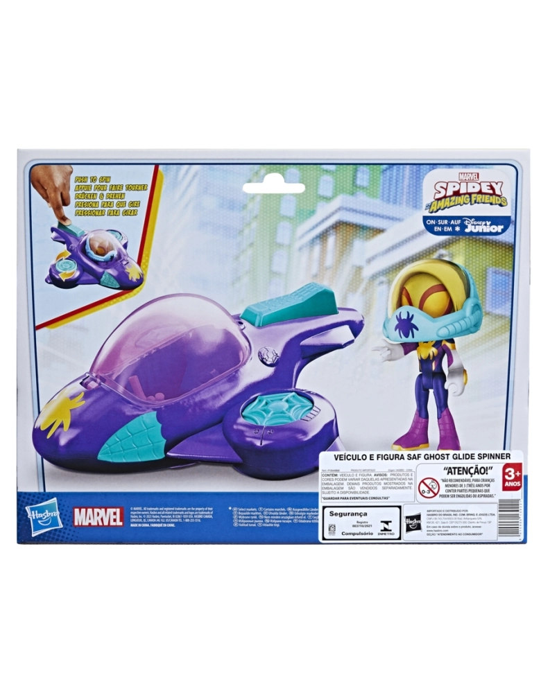 Muitas aventuras com o veículo Marvel Spidey e Seus Amigos Espetaculares Web-Spinners Ghost-Spider with Glide Spinner! Vem com decoração inspirada no herói aracnídeo e figura do Aranha de 10 cm com capacete. Fãs do Aranha e crianças a partir dos 3 anos vão adorar brincar com este veículo. Outros brinquedos, veículos e figuras do Spidey e Seus Amigos Espetaculares disponíveis. (Vendidos separadamente. Sujeitos à disponibilidade.) Copyright 2023 MARVEL. Hasbro e todos os termos relacionados são marcas comerciais da Hasbro.
