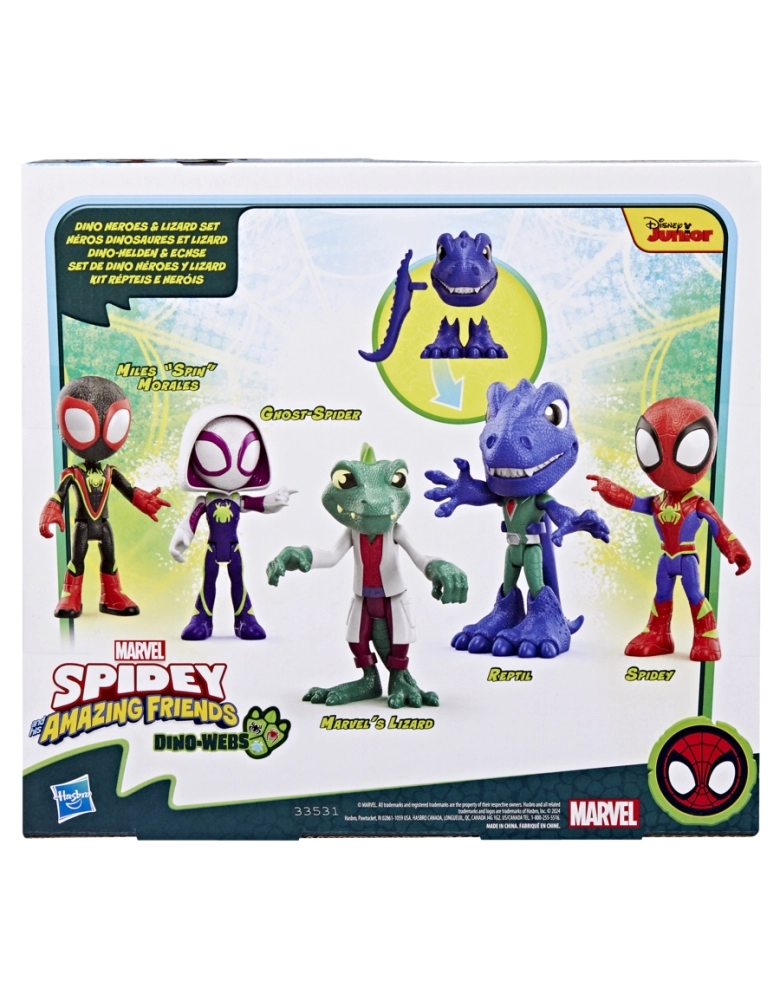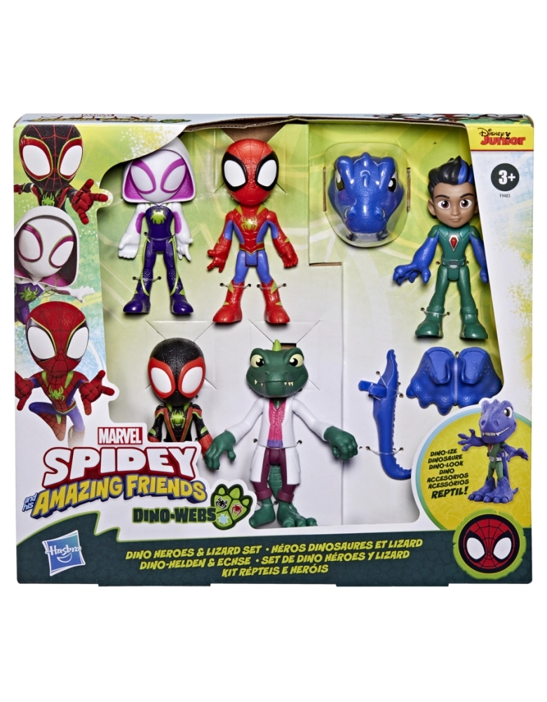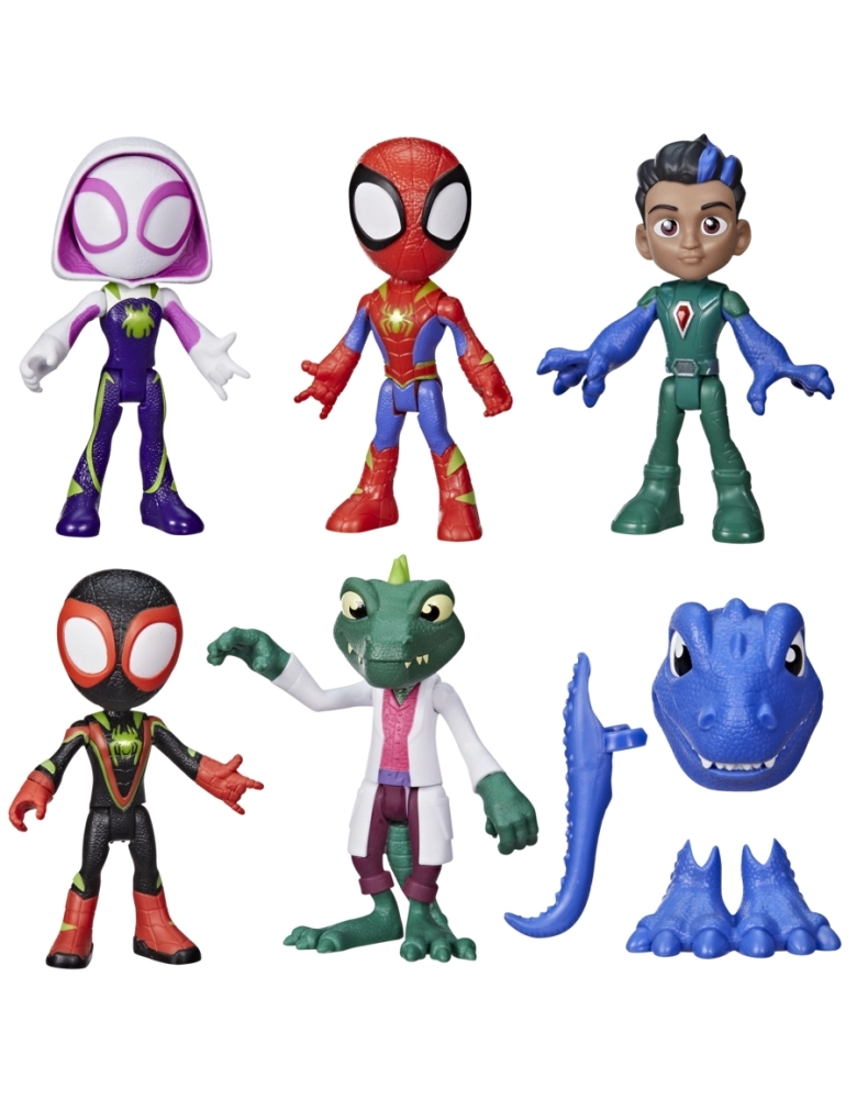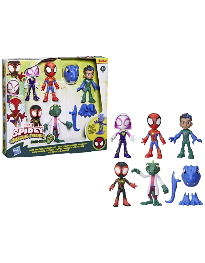 Muita diversão com o Time Aranha em suas aventuras dino com este Kit Répteis e Heróis Marvel Spidey e Seus Amigos Espetaculares! Este kit traz 5 figuras de 10 cm do time Aranha com trajes Dino-Webs, Réptil e Lagarto. Excelente para crianças a partir dos 3 anos. As crianças podem transformar o Réptil com os acessórios incluídos. Outros brinquedos Spidey e Seus Amigos Espetaculares disponíveis. (Vendidos separadamente. Sujeitos à disponibilidade.) Copyright MARVEL. Todas as marcas comerciais e marcas registradas são propriedade de seus respectivos proprietários. Hasbro and all related trademarks and logos are trademarks of Hasbro, Inc.