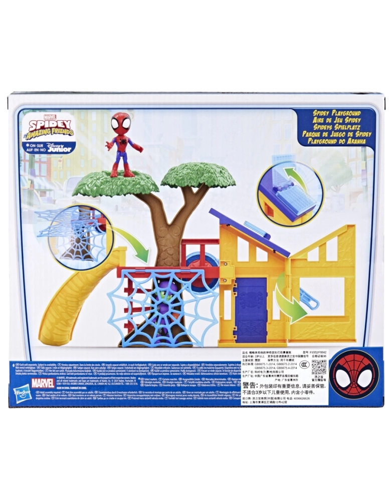 O brinquedo Marvel Spidey e Seus Amigos Espetaculares Playground do Aranha é um kit de brinquedo interativo inspirado no desenho da Disney Junior. As crianças a partir dos 3 anos podem se imaginar no playground do Aranha e interagir com vários objetos. As crianças são estimuladas a usarem a sua imaginação para criarem as suas histórias e momentos favoritos com o Time Spidey por horas! Cada kit inclui uma figura de 10 cm do Aranha. (figuras adicionais vendidas separadamente, sujeitas à disponibilidade)
