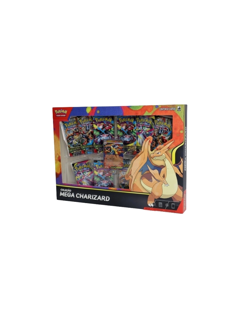 Sob as condições certas, incluindo um forte vínculo com seu Treinador, Charizard pode superar seus próprios limites e Megaevoluir! Com esta coleção, você pode escolher entre as chamas azuis devastadoras de Mega Charizard X ex ou a agilidade aérea de Mega Charizard Y ex, e encontrar ainda mais Pokémon nos vários pacotes de booster.