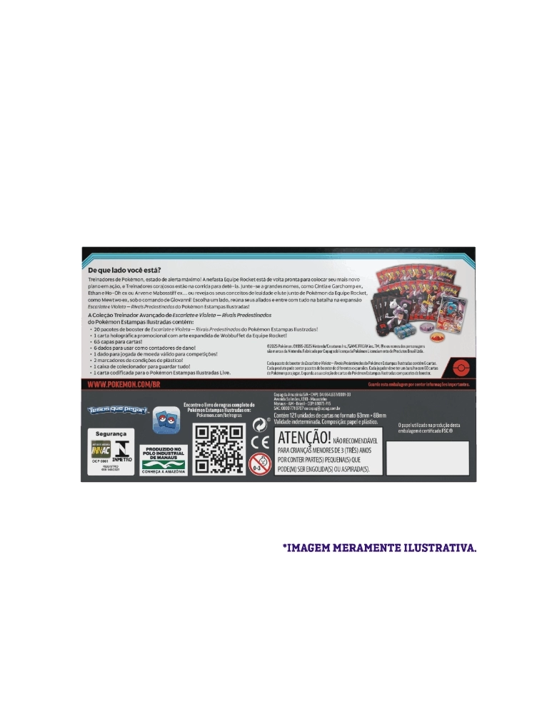 De que lado você está? Treinadores de Pokémon, estado de alerta máximo! A nefasta Equipe Rocket está de volta pronta para colocar seu mais novo plano em ação, e Treinadores corajosos estão na corrida para detê-la. Junte-se a grandes nomes, como Cíntia e Garchomp ex, Ethan e Ho-Oh ex ou Arven e Mabosstiff ex... ou reveja os seus conceitos de lealdade e lute junto de Pokémon da Equipe Rocket, como Mewtwo ex, sob o comando de Giovanni! Escolha um lado, reúna seus aliados e entre com tudo na batalha na expansão Escarlate e Violeta - Rivais Predestinados do Pokémon Estampas Ilustradas!