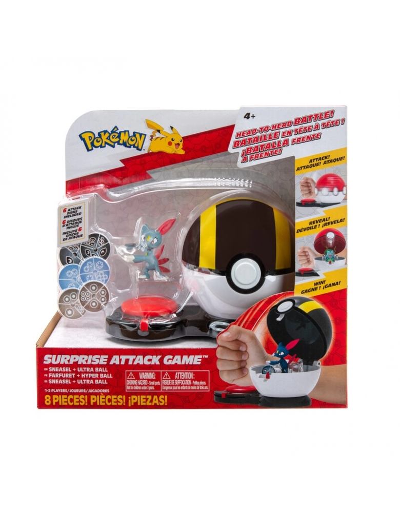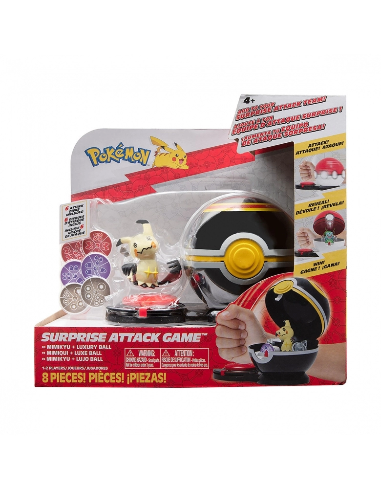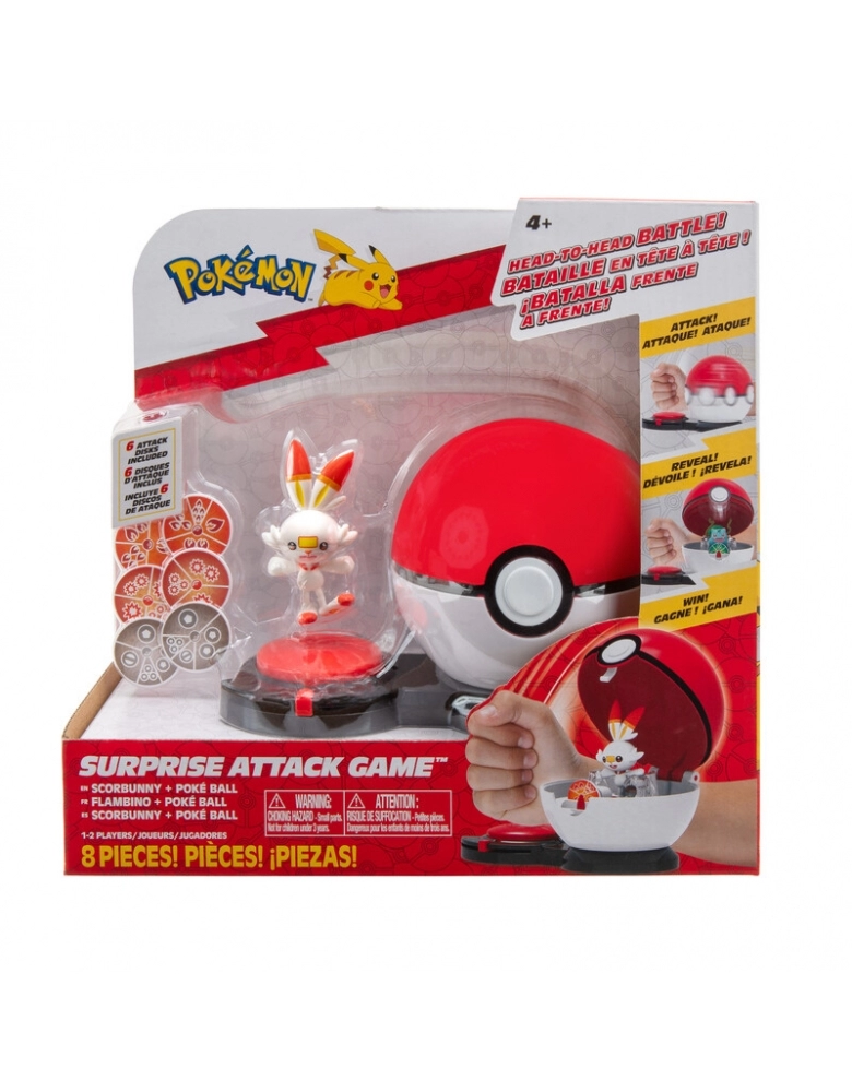 - Este pacote vem com tudo que você precisa para começar a batalhar: 1 Pokébola de Ataque Surpresa, 1 figura Pokémon e 6 Discos de Ataque com diferentes tipos para você escolher!
