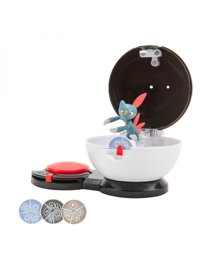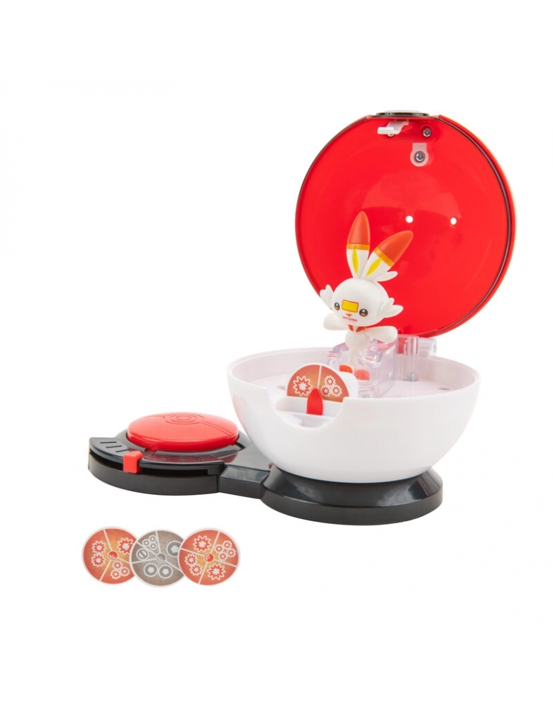 - Para começar a diversão, escolha o Pokémon com o qual deseja lutar, escolha um disco de ataque, carregue ambos na Pokébola de Ataque Surpresa e pressione o botão para girar a Pokébola e revelar seu Pokémon e seu ataque!
