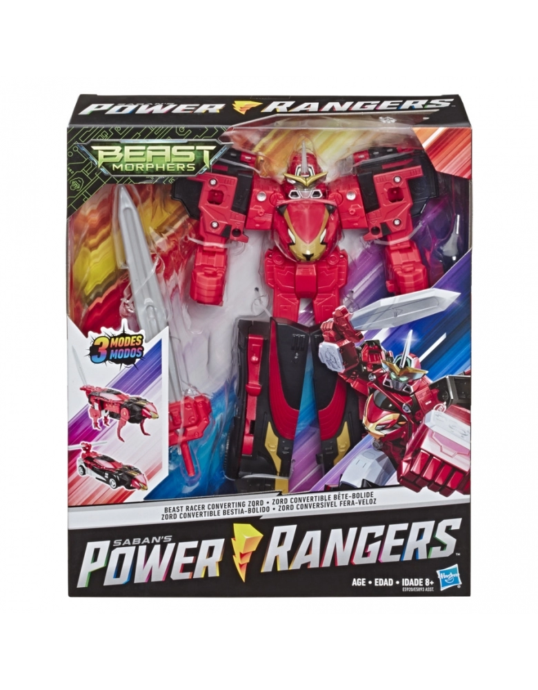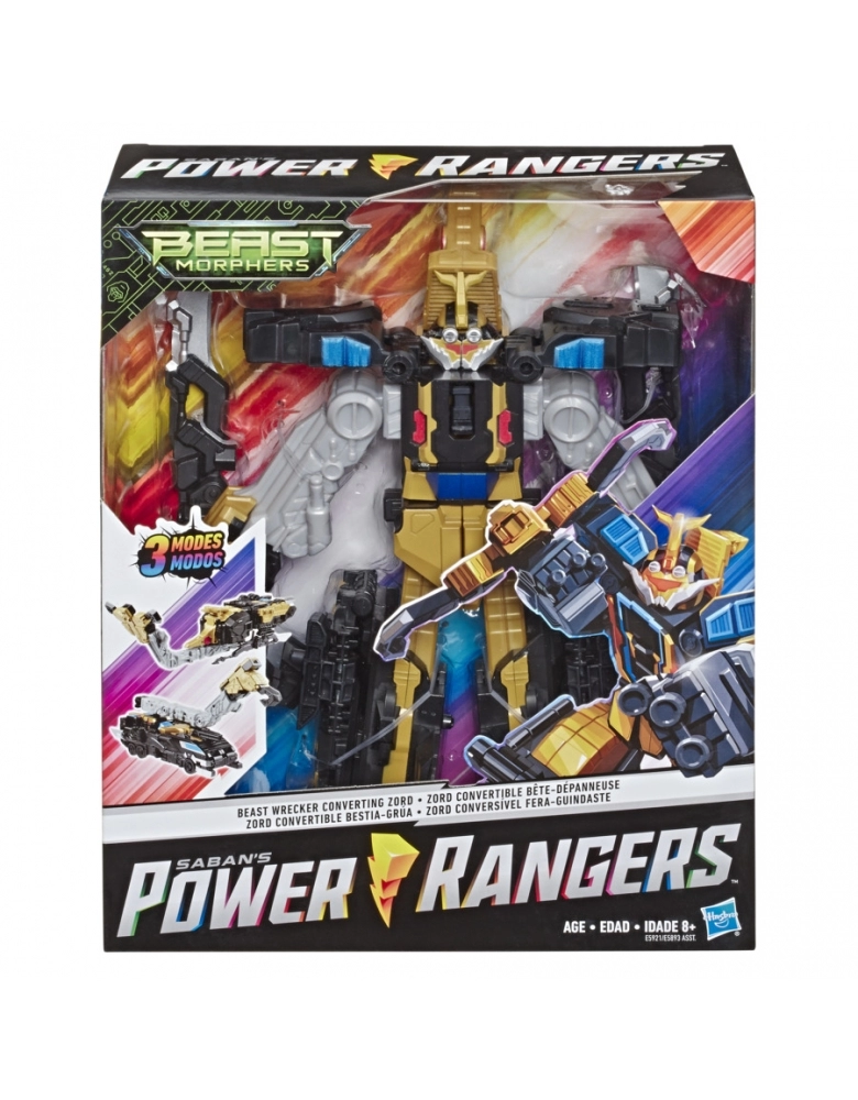 Triplicar a ação com Power Rangers Beast Morphers Triple Morphing Battle Zords. Cada Zord se converte em três modos: veículo, animal e robô! Além disso, os Zords podem se juntar para formar Zords ainda maiores! Ao juntar o Zord vermelho e o azul com os amarelos do sortimento Morphing Battle Zords, é possível formar o Megazord; juntando todos os cinco Battle Zords (vendidos separadamente), forma-se o Ultrazord!