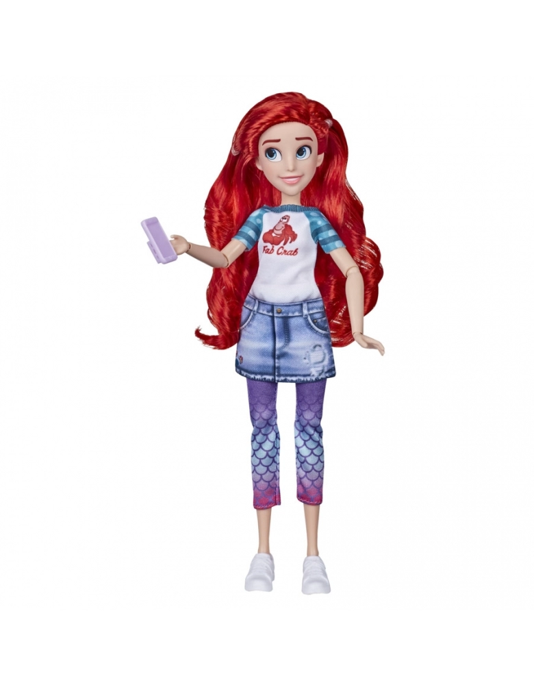 Em "Wi-Fi Ralph” da Disney, Vanellope von Schweetz - junto com seu melhor amigo Ralph - se aventura no mundo desconhecido da Internet. Quando ela se vê cercada por avatares da Internet dos personagens da Disney Princesa, ela fica surpresa ao saber que ela realmente tem muito em comum com elas. Inspirado na Disney Princesa Ariel da Disney, mais descontraída, vista no filme "Wi-Fi Ralph" da Disney, está boneca vem com uma camiseta divertida e uma composição de legging e saia moderna, além de vir com dois acessórios, um celular e par de tênis. Esta roupa dá um toque confortável e casual a uma das princesas clássicas favoritas das crianças.
