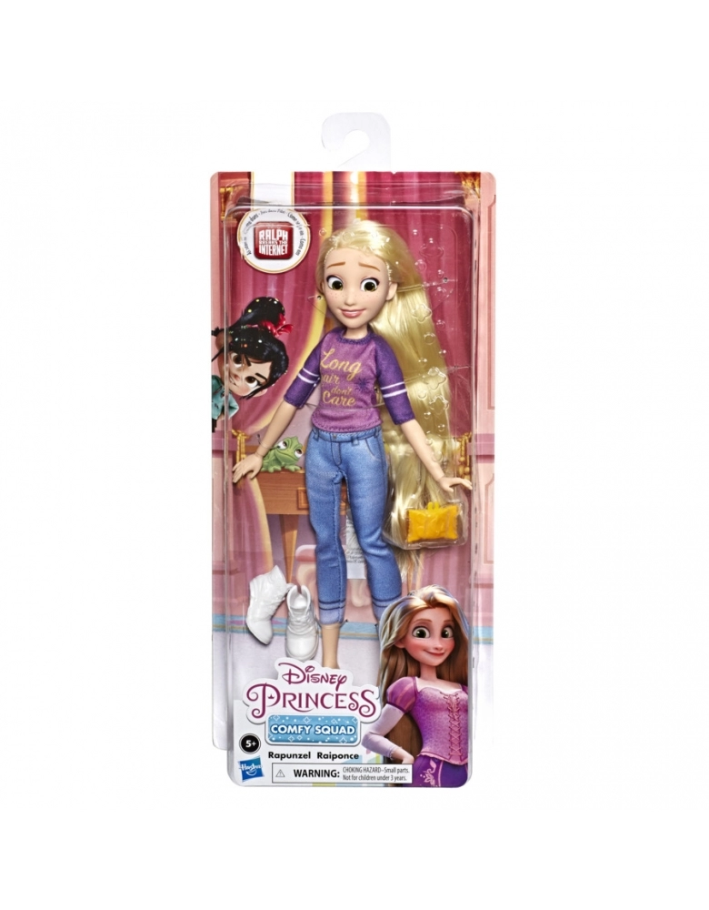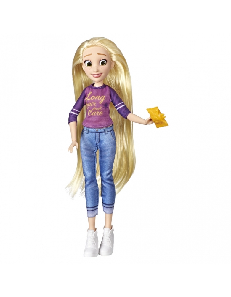 Inclui uma princesa Rapunzel com roupas confortáveis, casuais e modernas que incluem calças, tops e sapatos removíveis. Cada um vendido separadamente