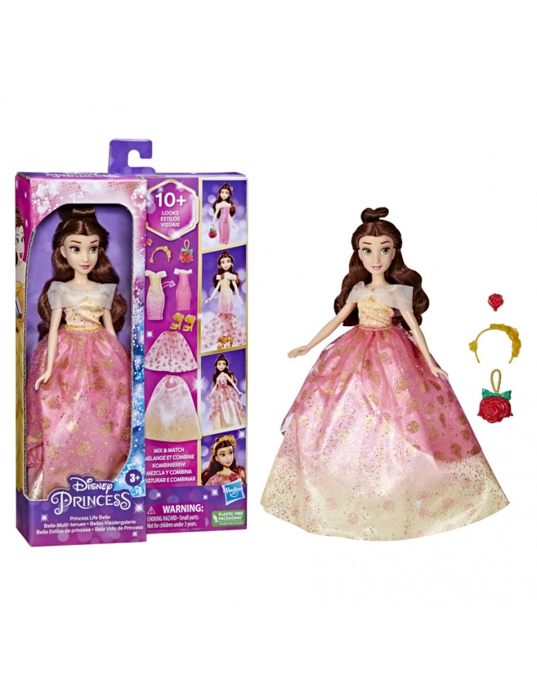 No filme A Bela e a Fera da Disney, Bela usa um vestido dourado deslumbrante durante a sua dança com a Fera no castelo encantado Inspirada no flime A Bela e a Fera da Disney, a boneca Bela de 28 cm vem com roupas que podem ser combinadas em diferentes camadas. A boneca Bela vem com vestido de dupla face removível, 2 saias, tiara, rosa, bolsa e sapatos. Com tantas opções, as crianças podem criar várias combinações e estilos para a boneca. Este brinquedo Disney Princess é um excelente presente para crianças a partir dos 3 anos.