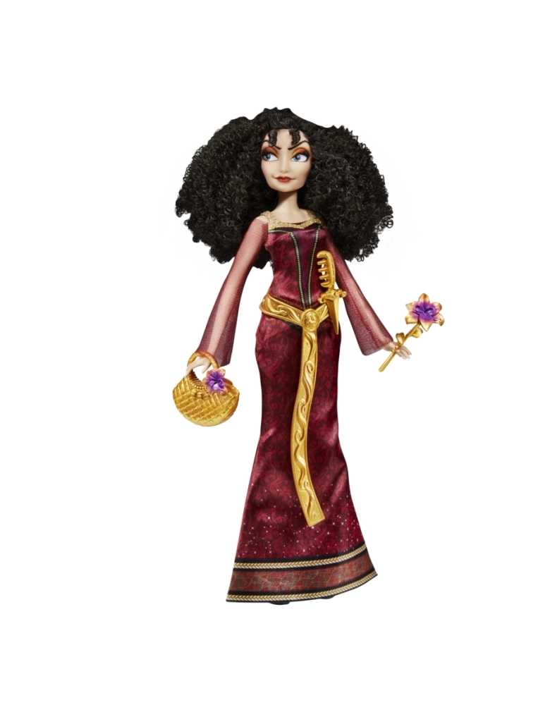 Independentes, confiantes, inesquecíveis e, sem dúvidas, maléficas! As vilãs da Disney estão sempre vestidas da mais alta moda. A boneca da vilã do filme Enrolados da Disney possui 28 cm e vem com linda roupa e acessórios, como sapatos, flor, bolsas e pente. Com o seu longo vestido vermelho, preto e dourado, esta boneca Disney Villains é um clássico da moda. As crianças a partir dos 5 anos vão adorar usar o decodificar para descobrir os acessórios escondidos em painéis secretos na embalagem. O decodificador pode ser usado para procurar imagens inspiradas escondidas no seu vestido. Outras bonecas Disney Villains disponíveis como Úrsula, Cruella De Vil e Malévola.