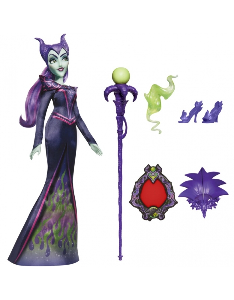 Independentes, confiantes, inesquecíveis e, sem dúvidas, maléficas! As vilãs da Disney estão sempre vestidas da mais alta moda. A boneca da vilã do filme A Bela Adormecida da Disney possui 28 cm e vem com linda roupa e acessórios, como o adorno da cabeça inspirado no filme. Com o seu longo vestido decorado com chamas, esta boneca Disney Villains é um clássico da moda. As crianças a partir dos 5 anos vão adorar usar o decodificar para descobrir os acessórios escondidos em painéis secretos na embalagem. O decodificador pode ser usado para procurar imagens inspiradas escondidas no seu vestido.