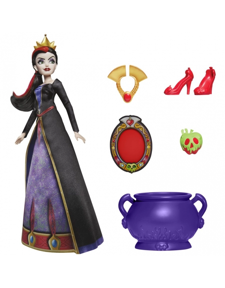 Independentes, confiantes, inesquecíveis e, sem dúvidas, maléficas! As vilãs da Disney estão sempre vestidas da mais alta moda. A boneca da vilã do filme Branca de Neve e os Sete Anões da Disney possui 28 cm e vem com linda roupa e acessórios, como sapatos, colar, coroa, caldeirão e maçã evenenada. Com o seu longo vestido preto e roxo, esta boneca Disney Villains é um clássico da moda. As crianças a partir dos 5 anos vão adorar usar o decodificar para descobrir os acessórios escondidos em painéis secretos na embalagem. O decodificador pode ser usado para procurar imagens inspiradas escondidas no seu vestido.