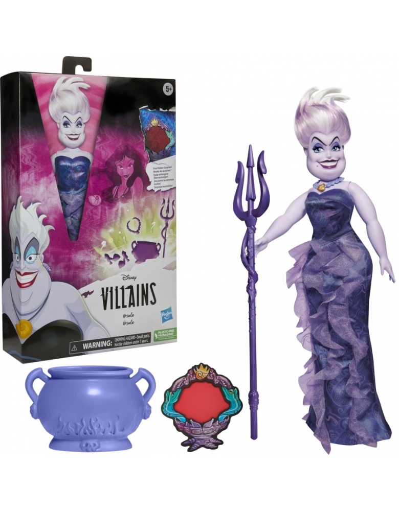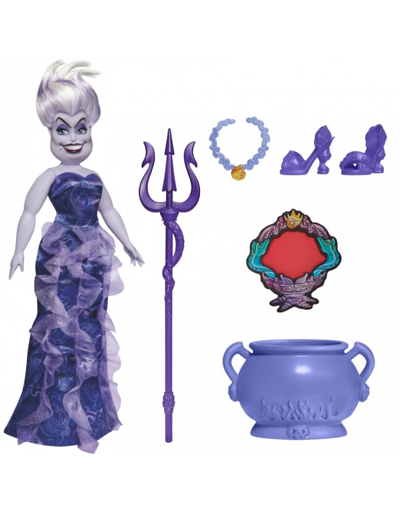 Independentes, confiantes, inesquecíveis e, sem dúvidas, maléficas! As vilãs da Disney estão sempre vestidas da mais alta moda. A boneca da vilã do filme A Pequena Sereia da Disney possui 28 cm e vem com linda roupa e acessórios, como sapatos e colar. Com o seu longo vestido roxo decorado com babados inspirados nas ondas do mar, esta boneca Disney Villains é um clássico da moda. As crianças a partir dos 5 anos vão adorar usar o decodificar para descobrir os acessórios escondidos em painéis secretos na embalagem. O decodificador pode ser usado para procurar imagens inspiradas escondidas no seu vestido.