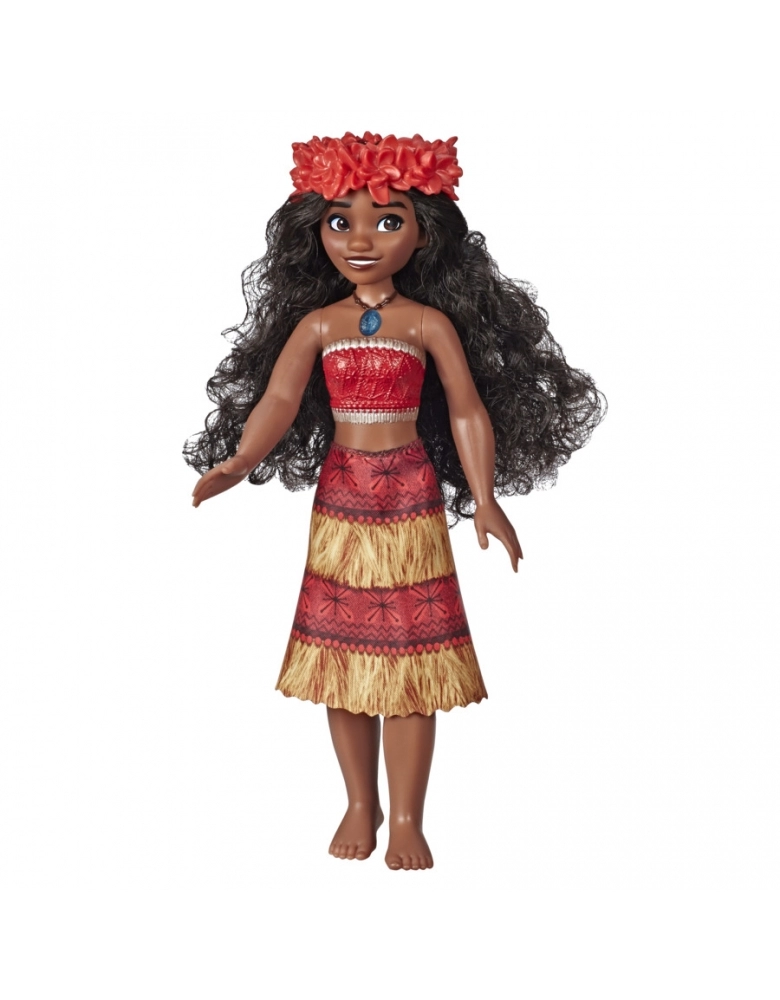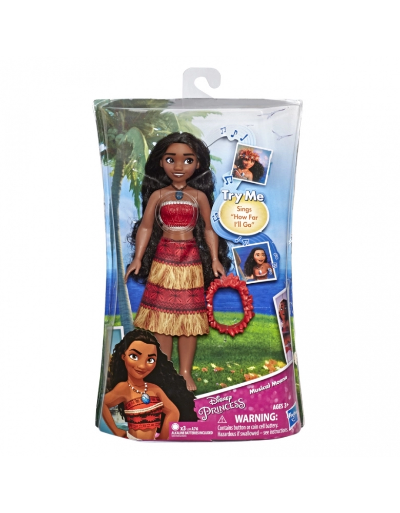 No filme de animação da Disney, Moana, Moana da Oceania parte em uma aventura inimaginável para salvar o povo de Motonui! Ouça esta boneca de moda Moana cantar sua canção icônica, "How Far I'll Go" - basta empurrar seu colar de conchas para começar a música. As crianças vão adorar cantar junto com a música de sucesso do filme!; Ela está usando um corpete moldado e uma saia linda, inspirada em filmes, com estampa floral e detalhes que lembram sua terra natal na ilha.; Esta boneca de moda Moana tem longos cabelos castanhos encaracolados que as crianças vão adorar estilizar para todos os tipos de aventuras oceânicas imaginárias. Um grande presente de aniversário ou presente de férias para crianças de 3 anos ou mais, os fãs de Moana grande e pequeno vão adorar adicionar este brinquedo Moana à sua coleção disney princess ao lado de clássicos favoritos da Disney como Ariel, Cinderela, Jasmine e Mulan (cada um vendido separadamente).