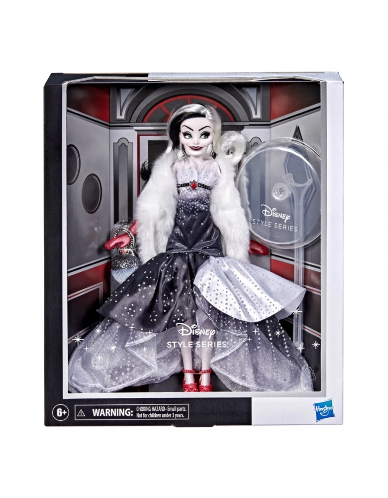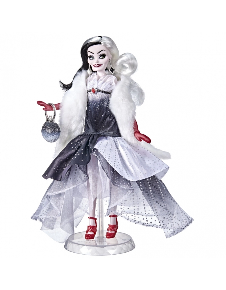 Esta boneca Cruela De Vil apresenta a personagem num visual moderno. Esta boneca inspirada em Cruela combinar elegância moderna e estilo clássico. Esta boneca vem com cílios e a cabelo de boneca. A boneca Cruela De Vil vem com uma serpente, par de sapatos, luvas, bolsa, colar e brincos para completar o visual elegante. Os fãs vão amar o toque especial contemporâneo desta série de bonecas de suas personagens favoritas.
