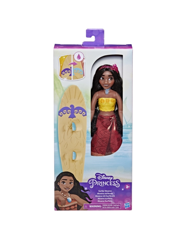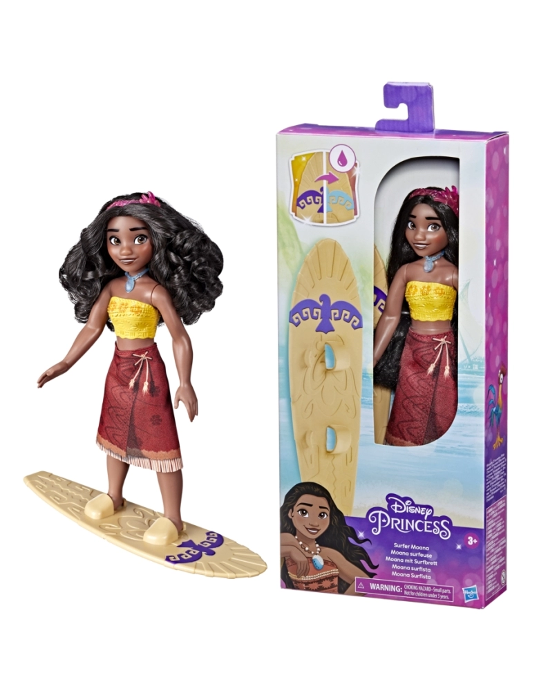 Moana adora surfar nas grandes ondas de Motunui. Este kit vem com a boneca da princesa Moana e uma prancha que muda de cor na água morna. A boneca vem pronta para aventuras diárias com roupa inspirada no filme. Esta boneca Disney Princess possui cabelos pretos ondulados e 5 pontos de articulação para que as crianças possam criar diversas poses com a boneca Moana. O brinquedo Disney é um excelente presente para que as crianças a partir dos 3 anos possam imaginar Moana se divertindo nas ondas. Outras bonecas Disney Princess disponíveis para criarem muitas aventuras. vendidas separadamente e sujeitas à disponibilidade.