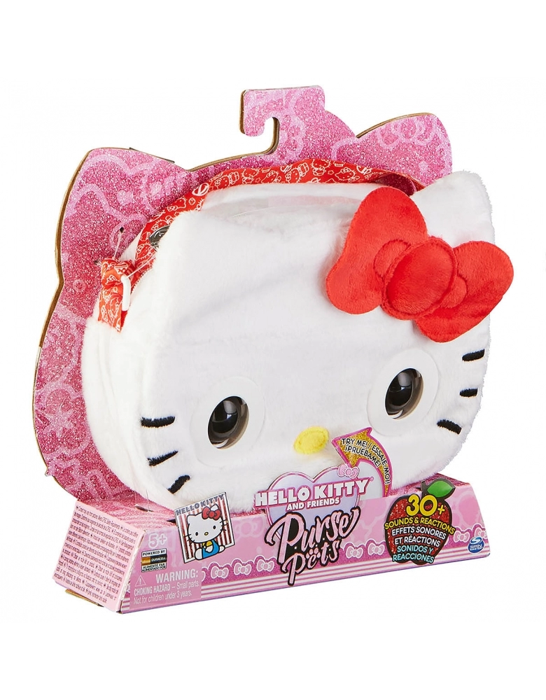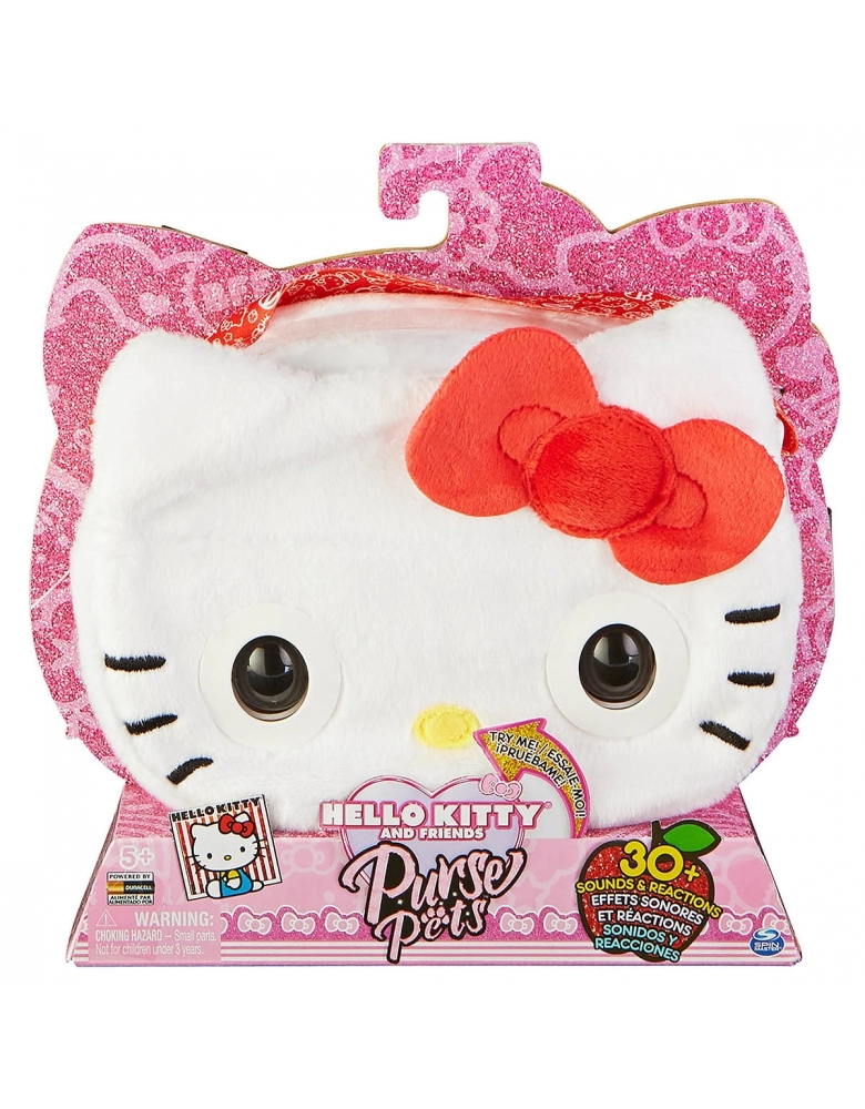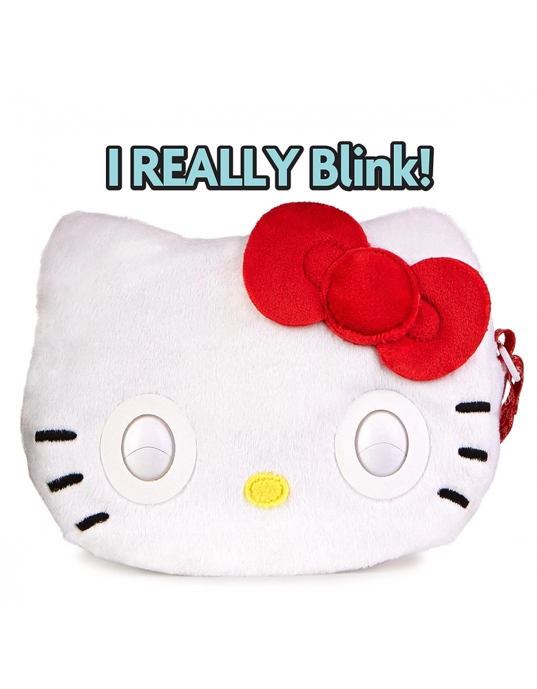 - PISCA, RESPONDE AO TOQUE: Esta bolsa de meninas Hello Kitty tem olhos que realmente piscam! Quando você está em uma aventura, ela pisca e interage com você. Segure a testa do seu Purse Pet para carregar um desejo!