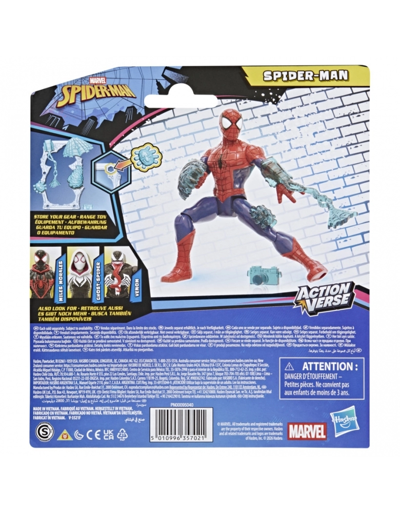 As crianças podem imaginar ação e aventuras pelas paredes com este brinquedo Marvel Spider-Man ActionVerse da Hasbro! Dar um impulso poderoso às brincadeiras com esta figura, que apresenta 9 pontos de articulação para brincar e exibir. Cada figura Super Hero ActionVerse de 11,5 cm vem com vários acessórios destacáveis inspirados nos personagens, além de um suporte de armazenamento de acessórios reutilizável.