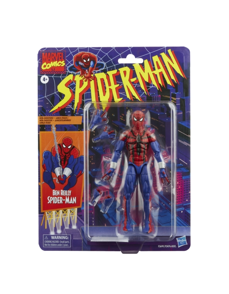 Após anos em um auto-imposto exílio, o Homem-Aranha está de volta! Agora chamado de Ben Reilly e portando novíssimos traje e lança-teias, o herói aracnídeo combate os criminosos!; Com mais de 80 anos de história em quadrinhos, TV e cinema, a Marvel tornou-se referência para fãs e colecionadores em todo o mundo. Com a série Marvel Legends, os personagens favoritos dos fãs do universo dos quadrinhos Marvel e do universo cinematográfico Marvel são criados com detalhes e articulações de alta qualidade para serem exibidos como incríveis peças. De figuras a veículos a itens de cosplay, a série Marvel Legends oferece produtos inspirados em personagens para fãs Marvel.