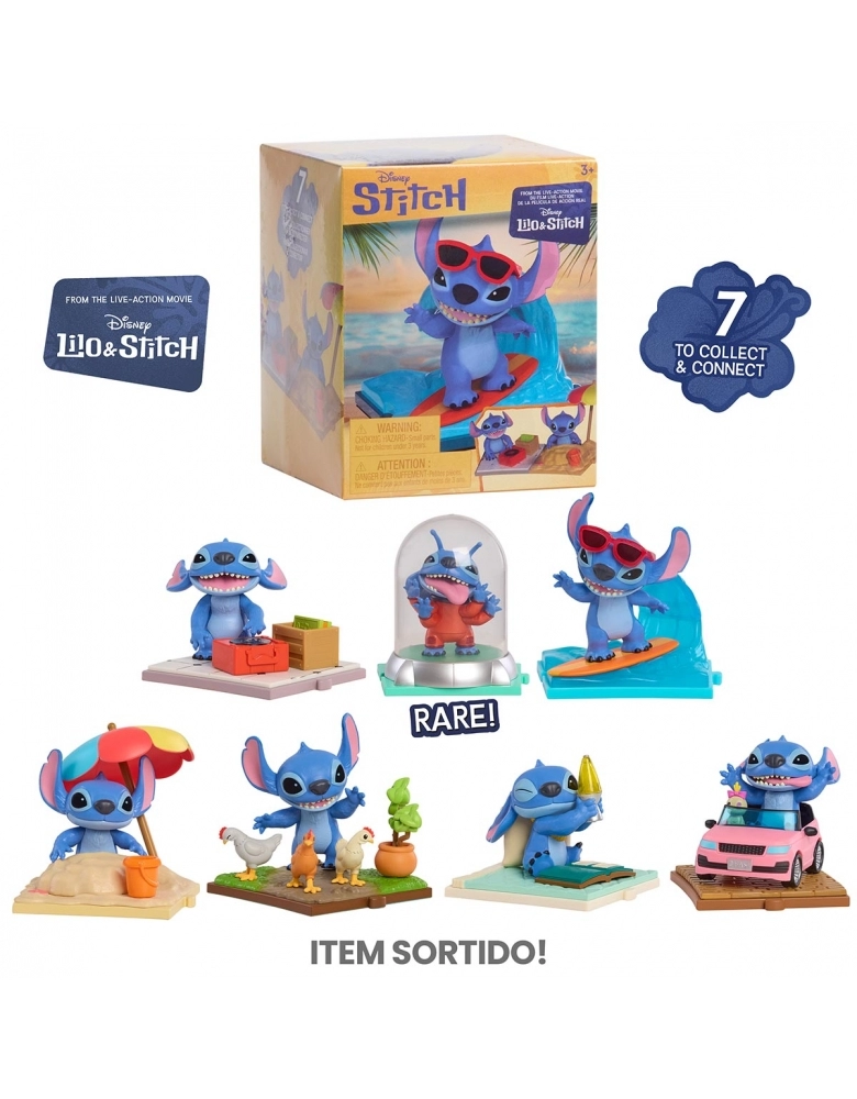 O conjunto "Movie Time Blind Boxes" apresenta mini cenários inspirados no filme live-action "Lilo & Stitch". São sete mini sets disponíveis que se conectam, formando cenas complementares do filme. Cada caixa contém um mini set sortido, e um deles inclui uma figura do Experimento 626 encapsulado, um item raro que adiciona exclusividade ao conjunto. Ideal para fãs que desejam reviver momentos do filme em miniatura. Cada embalagem contém apenas 1 boneco (unitário) que pode variar a cor e o modelo.