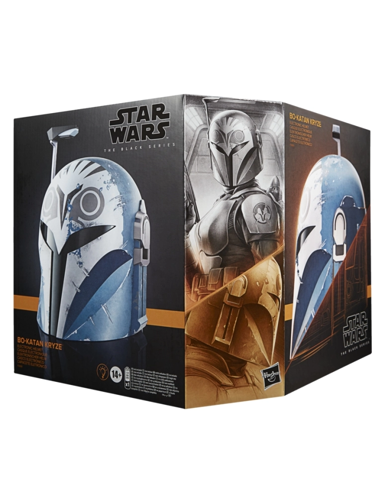 Bo-Katan Kryze tem lutado para garantir o futuro dos mandalorianos desde as Guerras Clônicas e usa uma armadura passada há gerações pela sua família. Como o último indivíduo de sua linhagem, ela lidera uma equipe de mandalorianos do clã Kryze que ataca o que sobrou do Império.; Os fãs podem imaginar grande batalhas com esta réplica em tamanho real do emblemático capacete de Bo-Katan Kryze, um item perfeito para os fãs de Star Wars. Basta pressionar um botão para que o visor se posicione, ativando LEDs, além de um HUD com LED. Os fãs poderão imaginar estar na pele da líder dos madalorianos e entrar em aventuras galácticas!; Star Wars products are produced by Hasbro under license from Lucasfilm Ltd.;