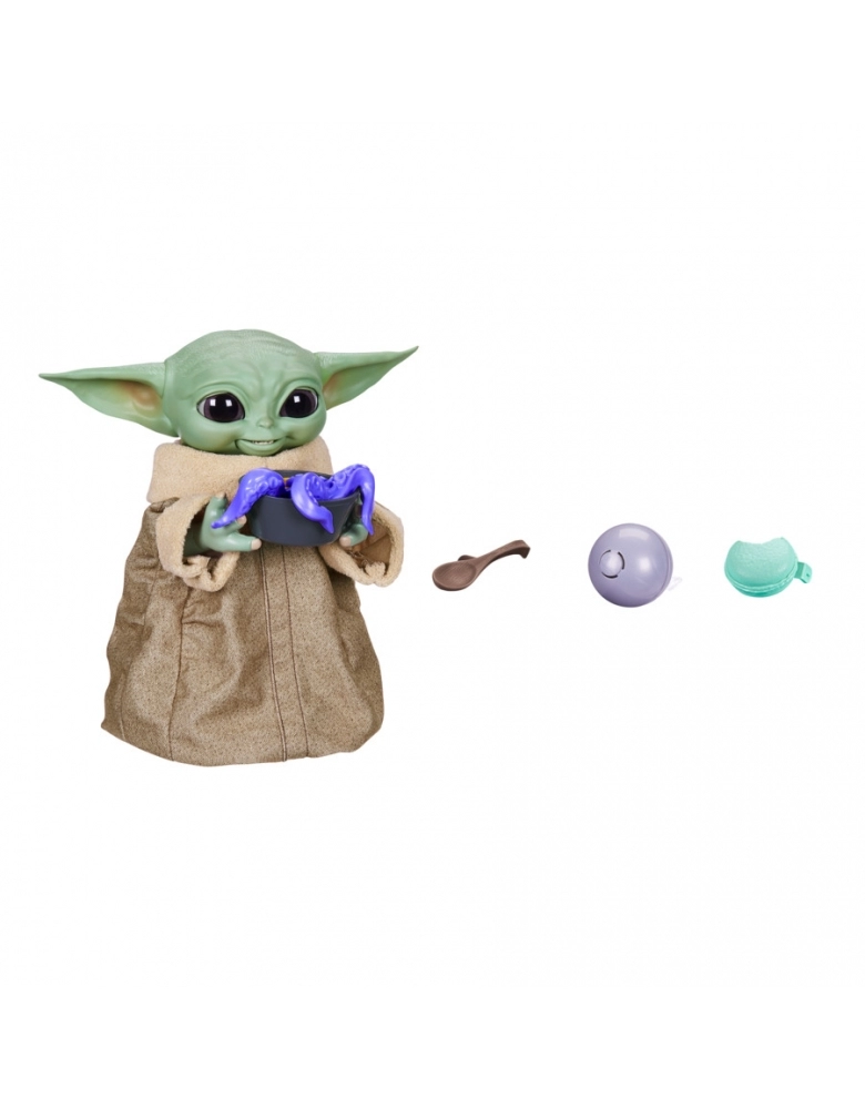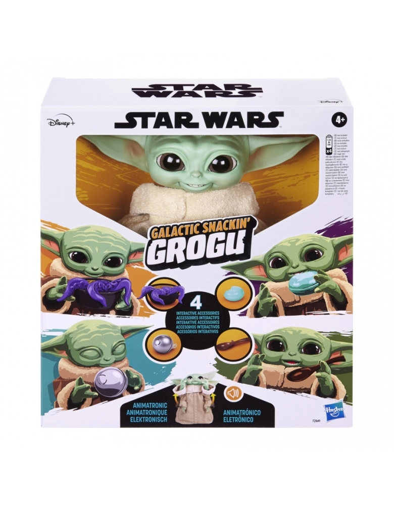 Grogu (The Child), carinhosamente apelidado pelos fãs de Star Wars como "Baby Yoda", está de volta! Esta edição possui diversos recursos, incluindo sons adoráveis, movimentos animados divertidos e acessórios interativos. Este brinquedo animatrônico galáctico está pronto para mais ação e aventura! Basta usar qualquer um dos acessórios incluídos em sua mão para Galactic Snackin’ Grogu reagir. Ao colocar um acessório em sua boca, ele vai fazer sons de que está comendo e será possível saber se ele acha aquilo gostoso ou não! Grogu (The Child) estende os dois braços quando quer ser segurado. E com um recurso de ativação da Força, o brinquedo animatrônico Galactic Snackin’ Grogu irá imitar a canalização da Força, inspirado por cenas da série de streaming de ação The Mandalorian na Disney+! Recursos adicionais incluem efeitos sonoros eletrônicos inspirados na série, um manto de tecido premium macio, além de cabeça, orelhas e braços que se movimentam. Grogu ainda abre e fecha e olhinhos!
