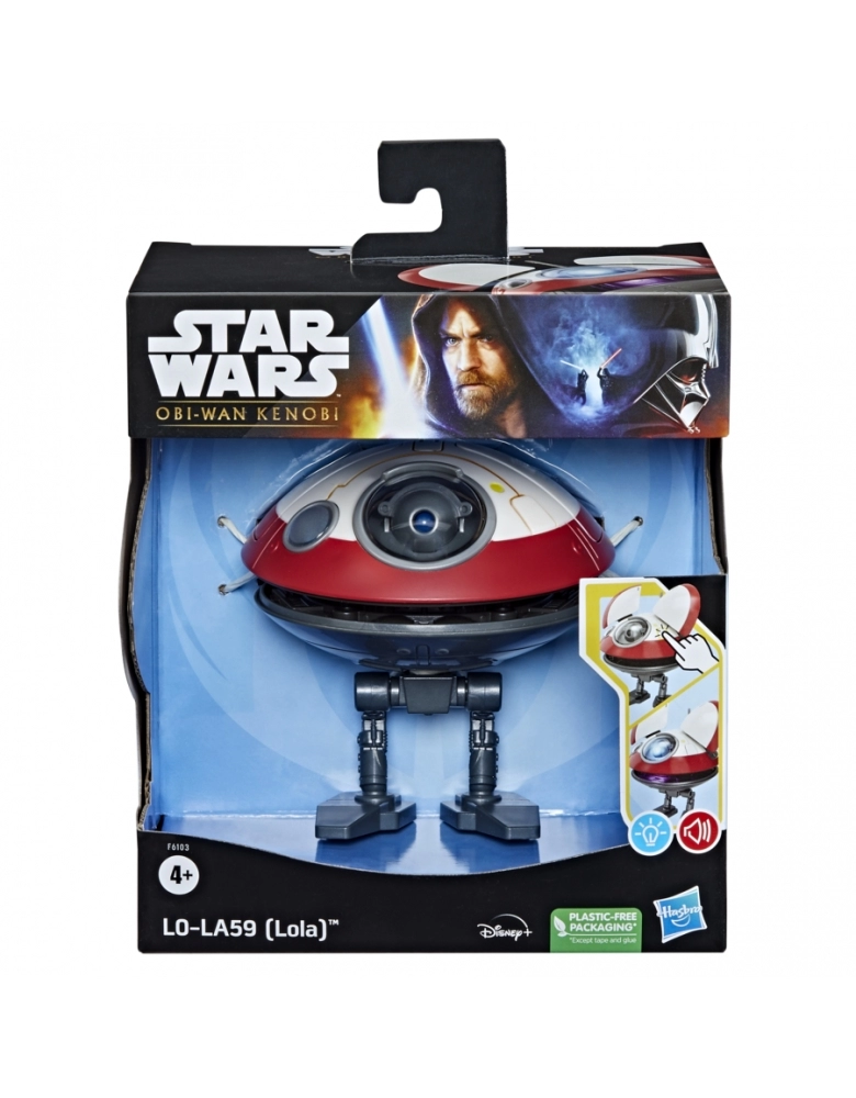 Obi-Wan Kenobi se passa anos após os eventos de Star Wars: A Vingança dos Sith, onde Kenobi testemunha a queda de Anakin Skywalker, o seu aprendiz Jedi que se tornou o Lorde Sith Darth Vader. A Figura Eletrônica Interativa Star Wars L0-LA59 (Lola) permite que crianças e fãs levem para casa um amado companheiro droid. Este brinquedo de Star Wars apresenta design e decoração inspirados na série live-action de Obi-Wan Kenobi no Disney+. Pressione o botão na cabeça de L0-LA59 para ativar sons e luzes de droides em seus olhos e boca. Além disso, coloque os painéis na cabeça dela, abra e feche a boca e incline a cabeça de um lado para o outro. Crianças de 4 anos ou mais vão adorar recriar seus momentos favoritos de Star Wars ou imaginar que estão decolando para uma galáxia muito, muito distante. Star Wars products are produced by Hasbro under license from Lucasfilm Ltd. Hasbro and all related terms are trademarks of Hasbro.