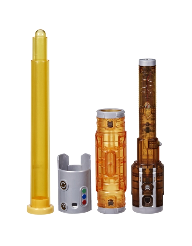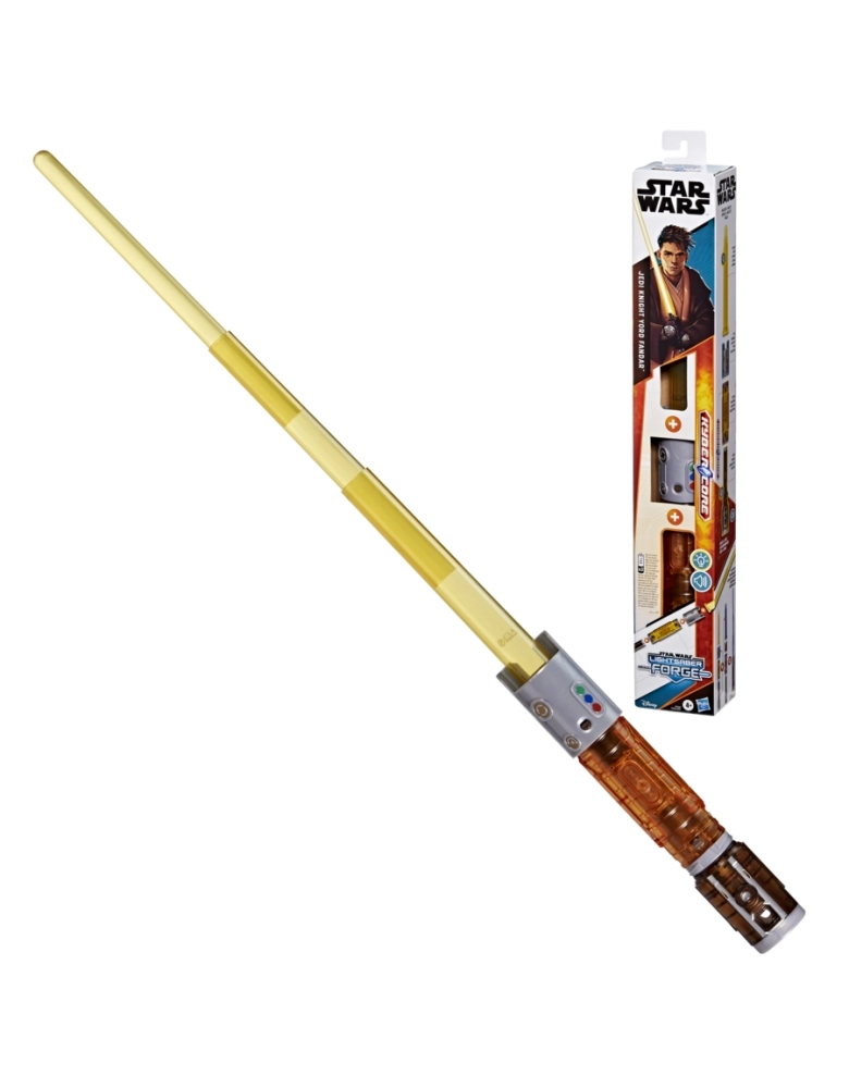 Muita diversão numa galáxia tão, tão distante com o sabre de luz Star Wars Lightsaber Forge Núcleo Kyber Cavaleiro Jedi Yord. Os sabres de luz são inspirados nos personagens e possuem lâminas que se estendem e retraem, além de efeitos de som. Agora, os sabres de luz eletrônicos da linha Lightsaber Forge possuem coberturas transparentes inspiradas nos cristais Kyber, fonte de poder de todo sabre de luz Jedi. As crianças podem usar a lâmina, capa, cobertura e núcleo para recriar o sabre de luz do Cavaleiro Jedi Yord. As crianças podem usar as peças da linha Lightsaber Forge Star Wars para criar milhares de combinações. O total de combinações inclui todos os produtos Lightsaber Forge. Produtos Lightsaber Forge adicionais vendidos separadamente, sujeitos à disponibilidade.) Usa este sabre de luz para crianças para complementar um disfarce Star Wars. É um excelente presente de Star Wars para crianças. Star Wars products are produced by Hasbro under license from Lucasfilm Ltd. Hasbro and all related terms are trademarks of Hasbro.