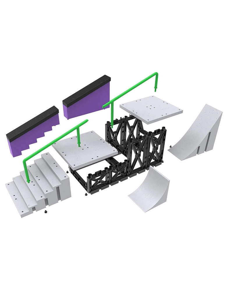 - Ela se conecta com outras rampas do X-Conecct Park (vendidas separadamente). Vem com 1 skate e 1 rampa.