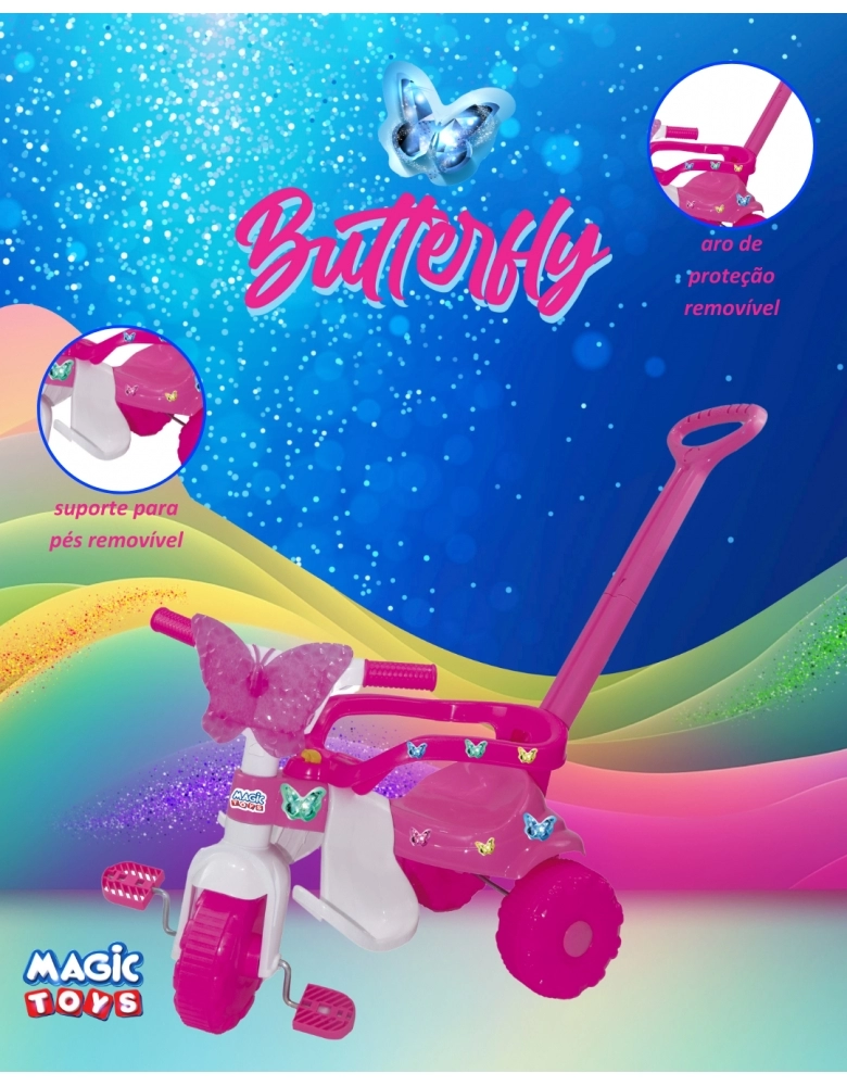Descubra a diversão e o conforto do Triciclo Butterfly da Magic Toys! Com um design encantador, este triciclo é perfeito para crianças que estão começando a explorar o mundo ao seu redor.