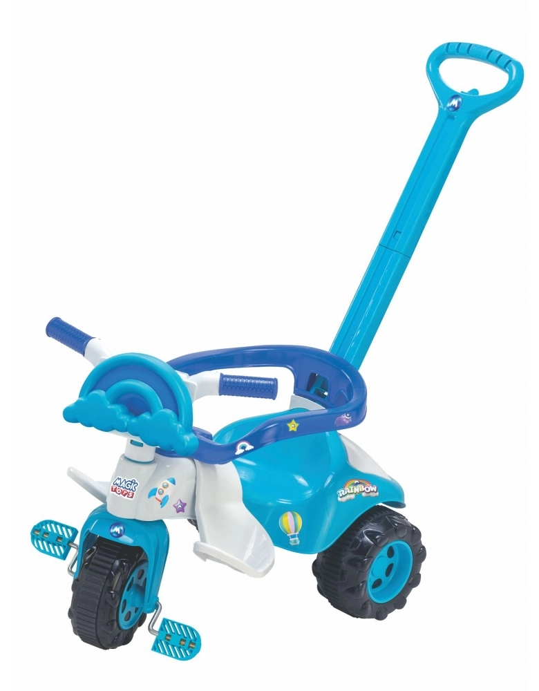 Nessa motoca encantadora Rainbow Azul da magic Toys tem tudo o que precisa para um passeio seguro e confortável.