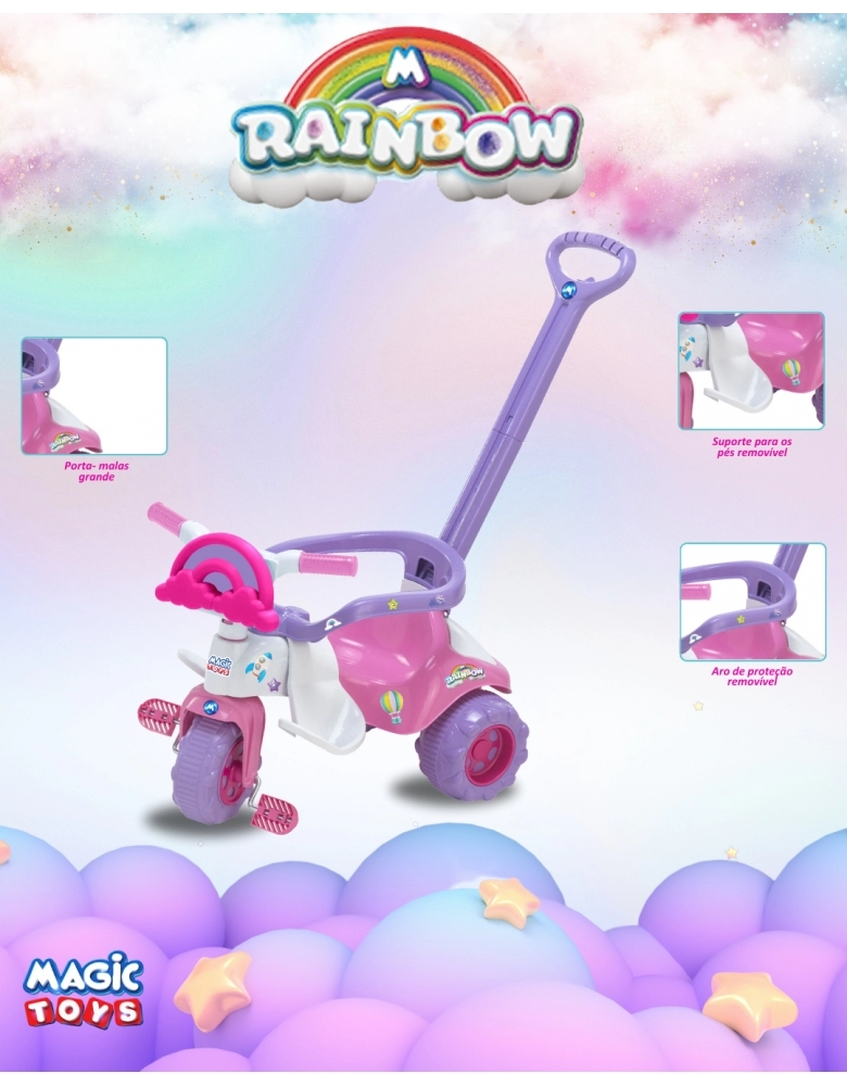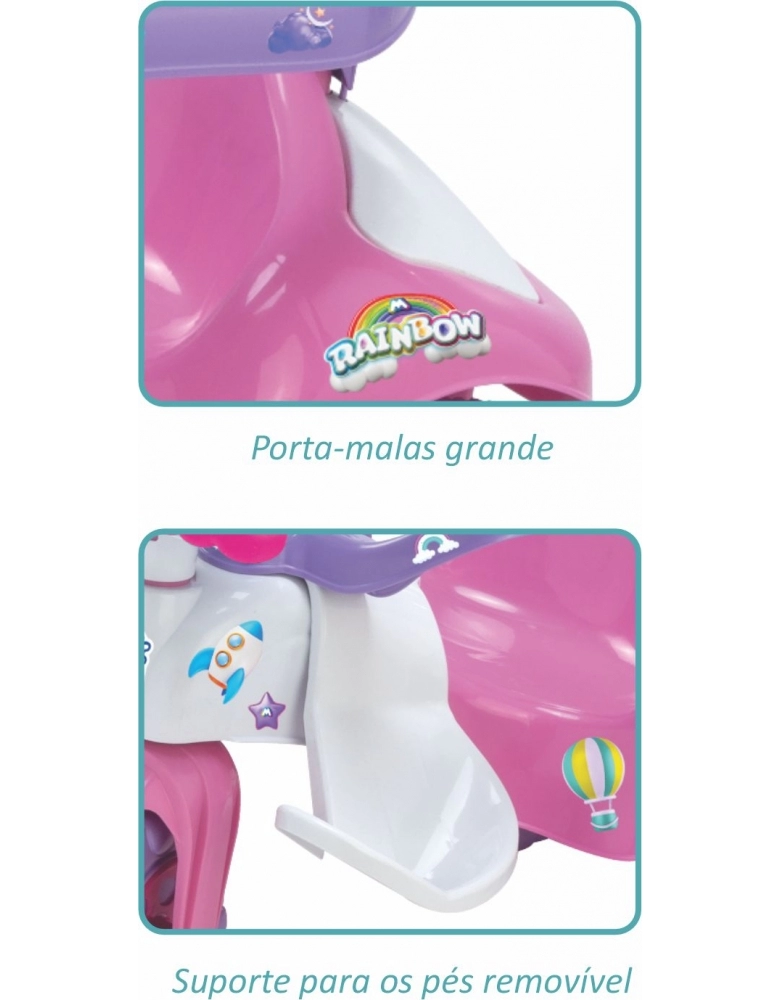 Nessa motoca encantadora Rainbow Rosa da magic Toys tem tudo o que precisa para um passeio seguro e confortável.