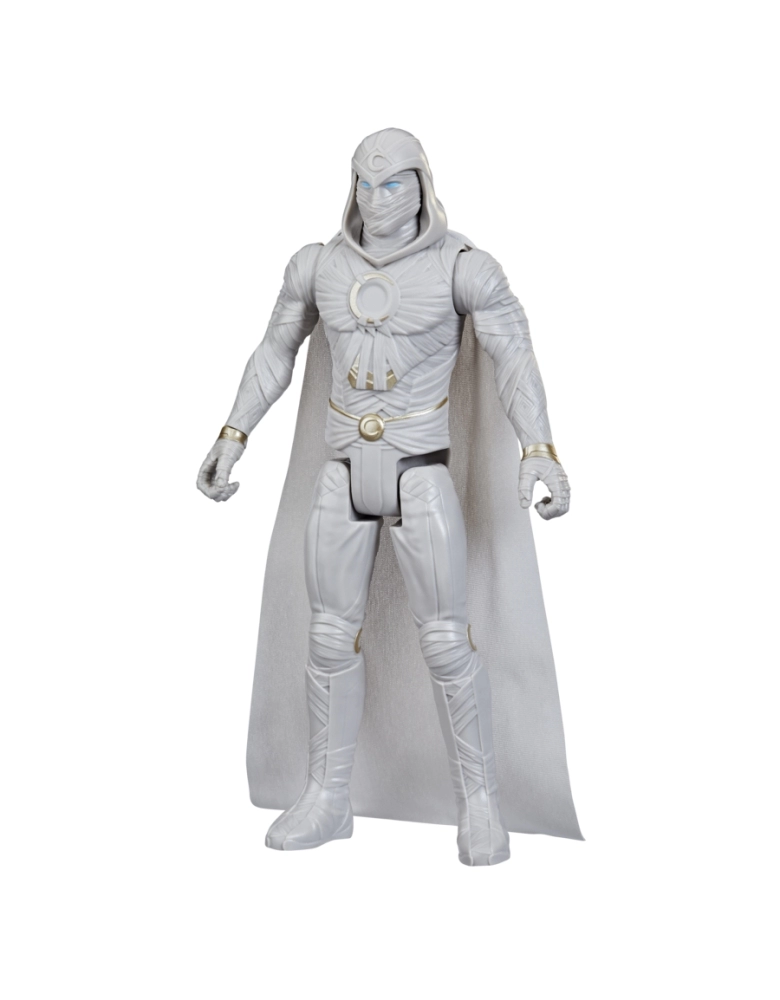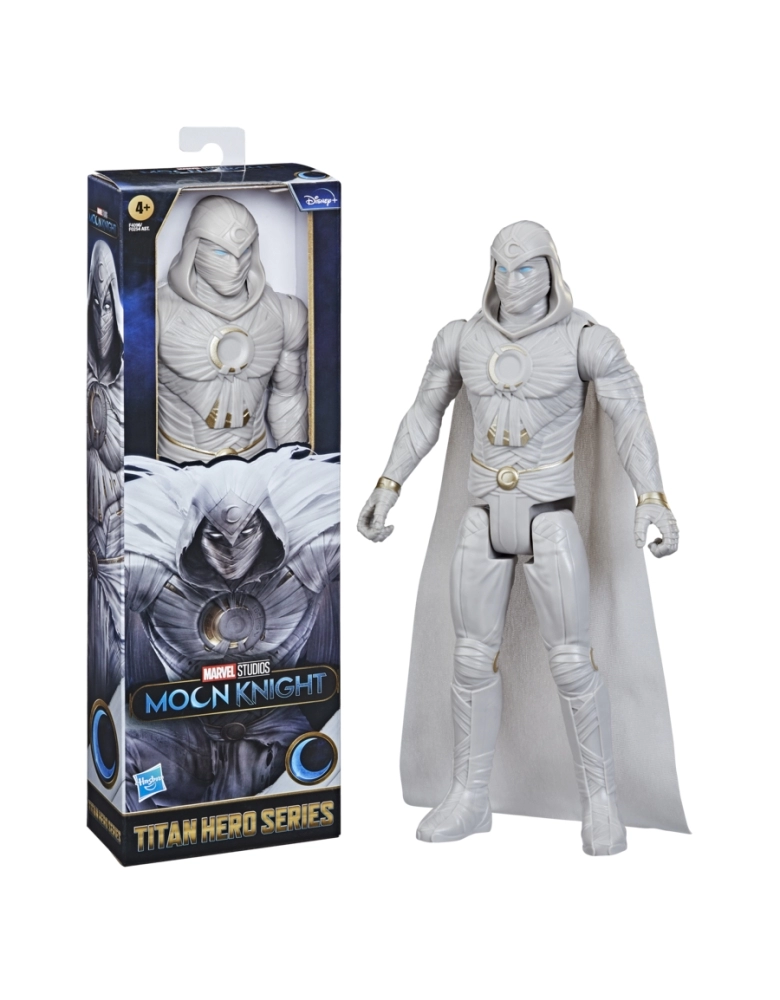 Marc Spector é mais conhecido como o super-herói Cavaleiro da Lua. Após receber poderes do deus egípcio Khonshu, o Cavaleiro da Lua leva justiça e vingança por onde passa Toda emoção do Universo Marvel com as figuras Titan Hero Series! Crianças a partir de 4 anos podem imaginar um universo de super-heróis com estas figuras de 30 cm da Marvel, inspiradas na série de Disney Plus. Apresentando design e detalhes inspirados na série, bem como vários pontos de articulação para mais diversão, meninos e meninas vão adorar imaginar aventuras em tamanho titânico!