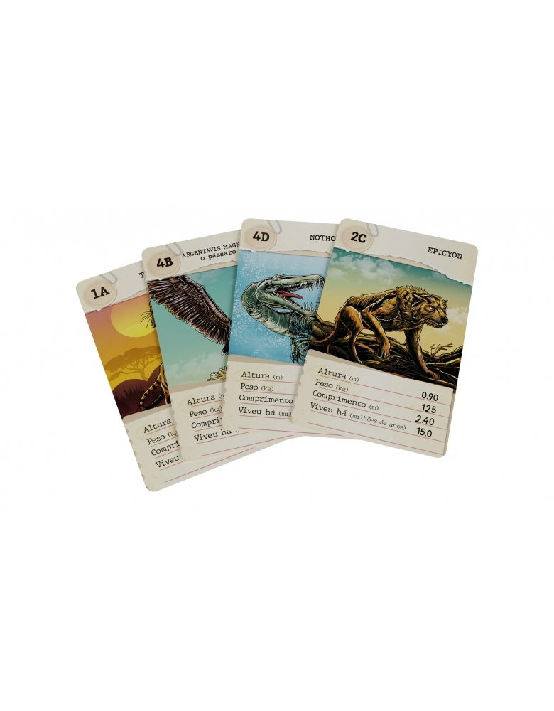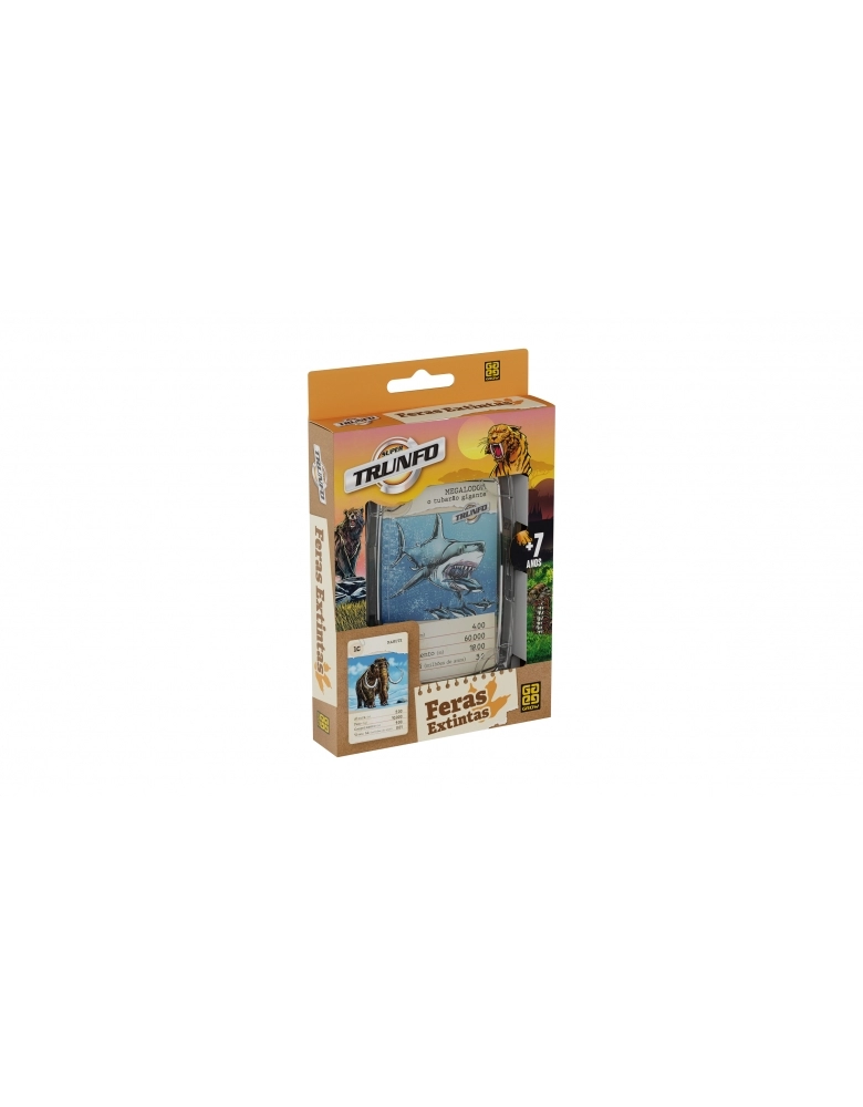 Super Trunfo Feras Extintas traz 32 cartas com ilustrações e informações sobre as mais diversas feras que já existiram no mundo animal. Em qual item a fera da sua carta é a melhor? Será em altura? Em peso? Ou você tem o Super Trunfo? Escolha, compare e vença essa emocionante disputa!