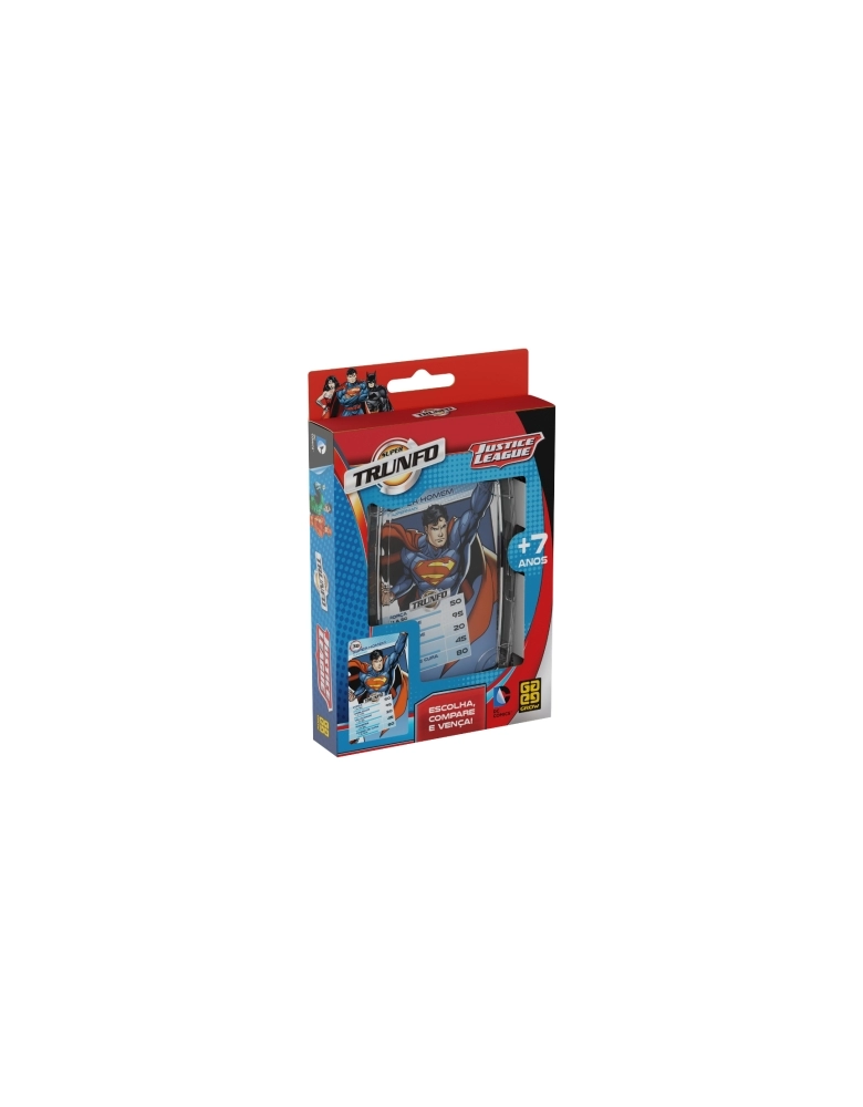Super Trunfo Liga da Justiça traz 32 cartas com ilustrações e informações sobre os personagens da Liga da Justiça. Em qual item o herói da sua carta é o melhor? Será em força? Poderes? Ou você tem o Super Trunfo? Escolha, compare e vença essa emocionante disputa!