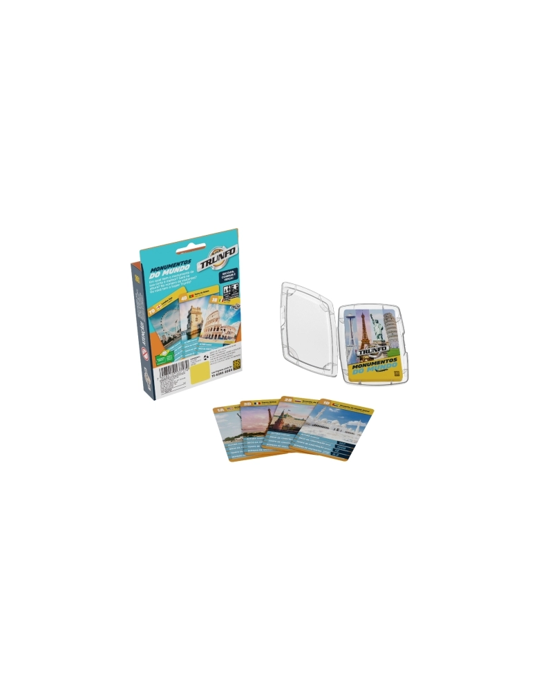 O Super Trunfo Monumentos do Mundo traz 32 cartas com alguns dos mais famosos monumentos espalhados ao redor do mundo: Estátua da Liberdade, Coliseu, Torre Eiffel, Ponte Golden Gate e muito mais! As cartas contam com características como: altura, início da construção, tempo de construção e número de visitantes. Veja em qual característica o seu monumento é bom, escolha, compare e vença!