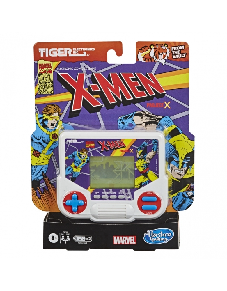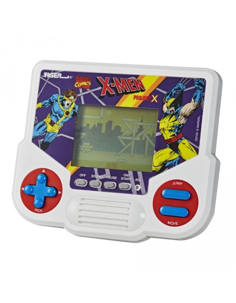 Que tal voltar no tempo? Fãs antigos ou novos entusiastas de joguinhos eletrônicos vintage podem se divertir com este videogame retrô LCD Tiger Electronics X-Men Project X, inspirado no original dos anos 90. Joga-se como Cyclops, que lança raios ópticos para derrotr os malignos mutantes Juggernaut e Apocalypse. Se o jogador precisar de ajuda, basta coletar o «X» para que Wolverine apareça para dar uma mãozinha. São 5 fases em que ojagador deve cuidar de suas vidas e recarregar energia saltando e