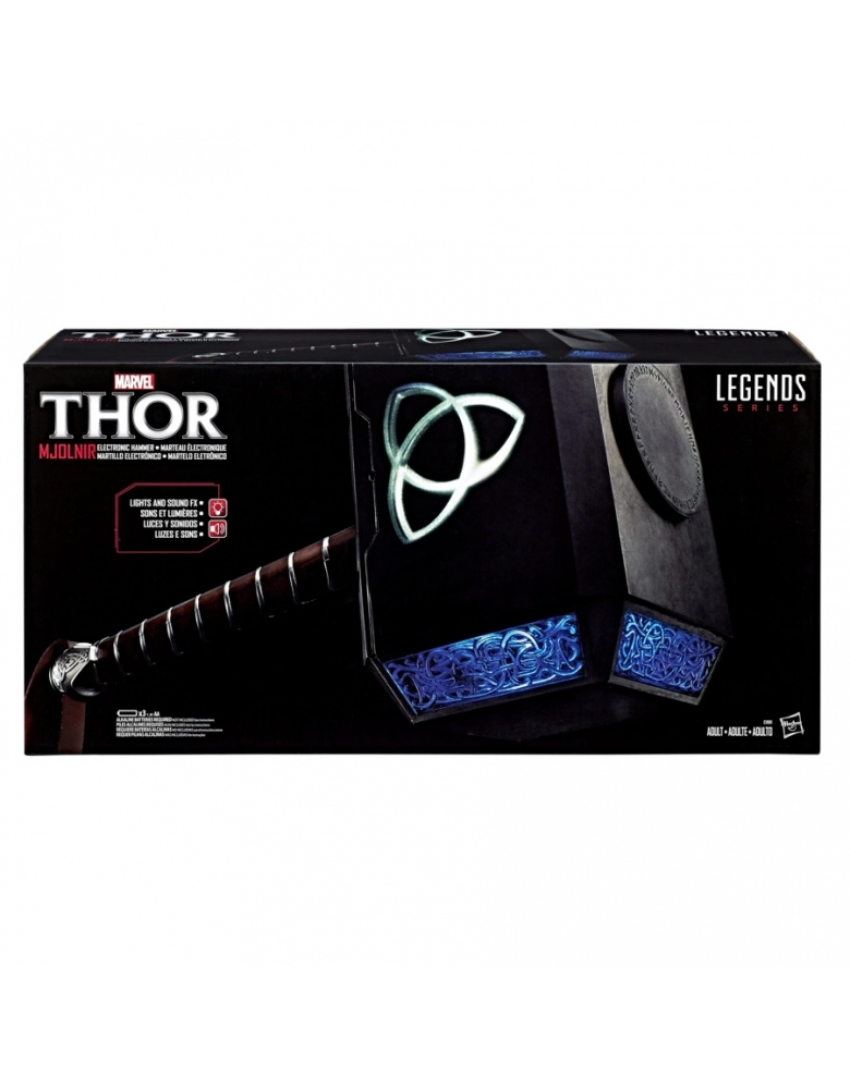 Imagine convocar os poderes de Mjolnir! Com este martelo eletrônico Mjolnir da Marvel Legends Series, empunhe o martelo de Thor e imagine canalizar os poderes do deus asgardiano do trovão! Inspirado no clássico Thor e construído em escala real, este Martelo Eletrônico apresenta design e estilo premium, além de detalhes intrincados no punho, nas tiras e na cabeça do martelo. Use o poderoso Mjolnir Eletrônico e fale as palavras "Thor" ou "Digno" para ativar um recurso de luz que revela o símbolo d