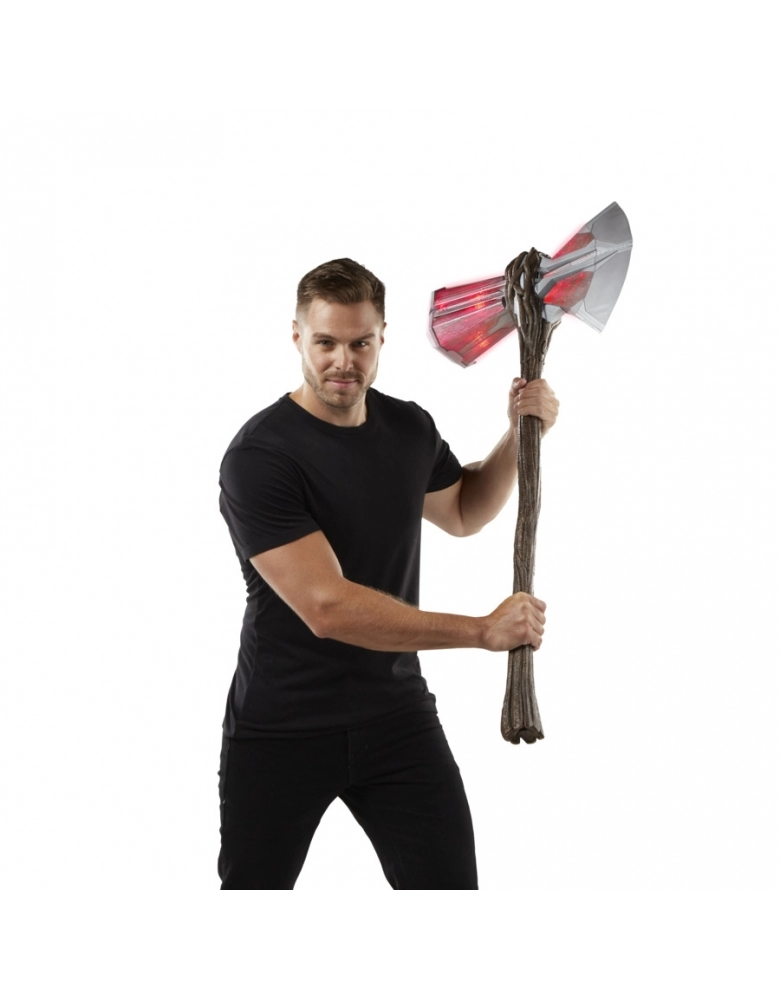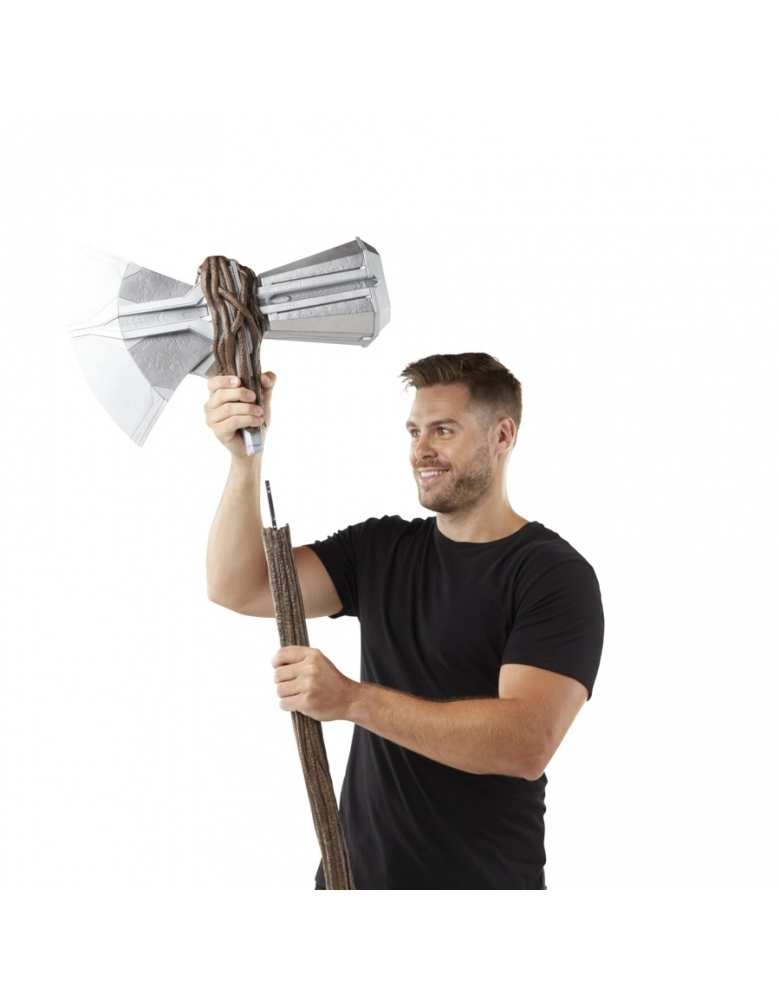 Thor, filho de Odin, guerreiro com poder do trovão, usa os seus poderes para proteger tanto Asgard quanto o planeta terra do mal Thor empunha um machado após a sua maligna irmã destruir o seu martelo Mjölnir. Fãs e crianças podem imaginar-se em aventuras com os seus heróis favoritos, como Homem de Ferro, Capitão América, Homem-Aranha, Viúva Negra, Hulk, Pantera Negra e outros Vingadores! (Produtos adicionais vendidos separadamente. Sujeitos à disponibilidade.) Imaginar-se derrotando Thanos com este Machado Eletrônico do Thor! Basta apertar um botão para ativar os sons. Agora, os fãs Marvel podem imaginar aventuras ao lado dos heróis com este item realístico inspirado no filme Vingadores: Ultimato! Contém machado de brinquedo e instruções. Pilhas não incluídas.