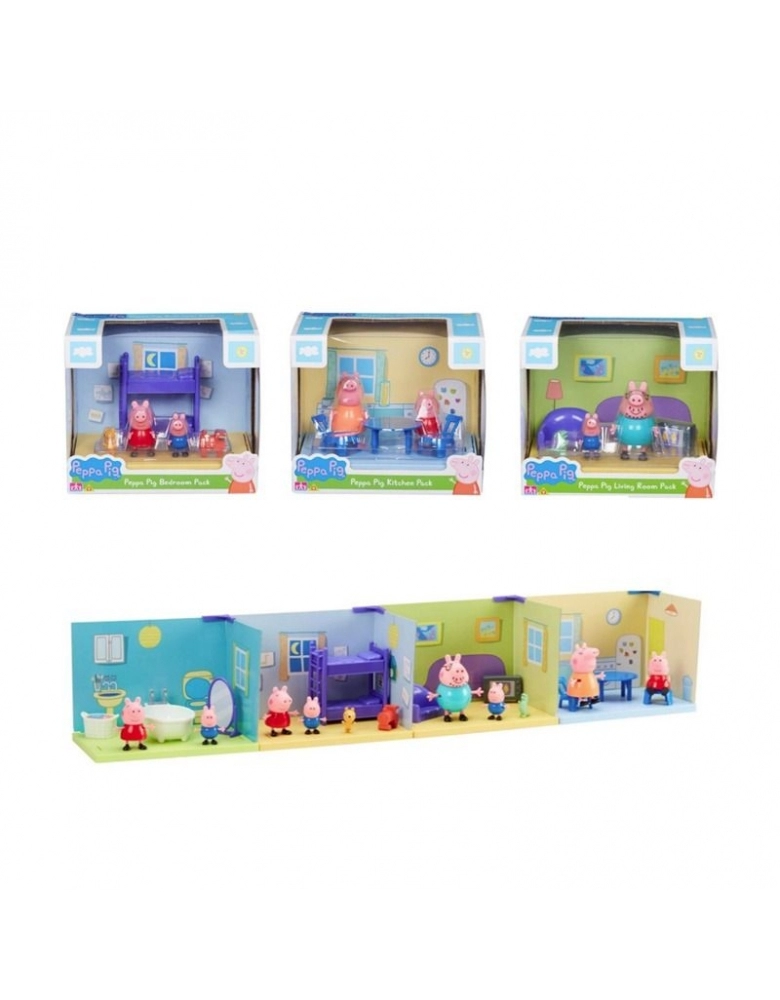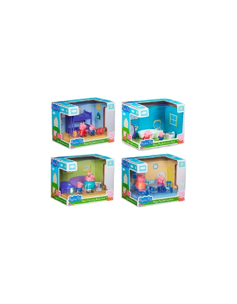 Crie suas próprias aventuras da Peppa Pig com essas cenários do desenho! Cada pack inclui: 1 cenário, 2 figuras e acessórios. São vários modelos, escolha entre: sala, quarto, banheiro e cozinha.