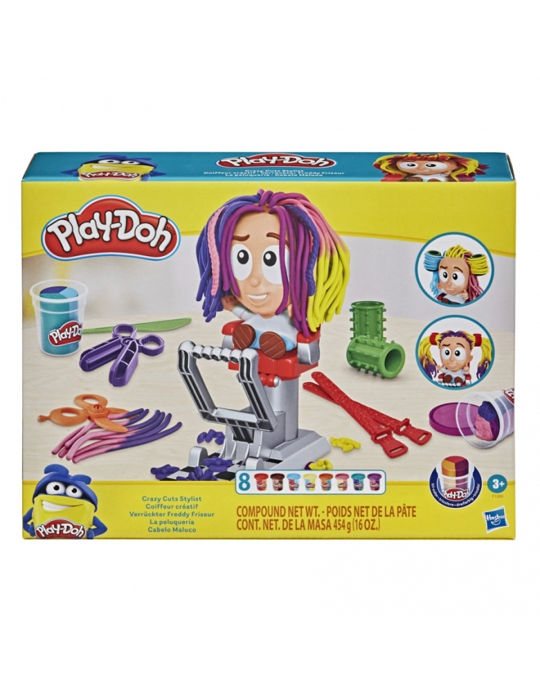 Todos os estilos são bem-vindos na barbearia Play-Doh! As crianças podem dar novos visuais às figuras com a tesoura de brinquedo ou raspar a barba com o barbeador de mentirinha. Depois basta criar mais cabelo de Play-Doh para brincar de novo. Basta adicionar a massa de modelar Play-Doh no mecanismo do brinquedo para fazer cabelos coloridos de Play-Doh crescerem. O kit traz muita variedade de cores com 8 potes de 56 g com 3 cores Play-Doh. As crianças podem imaginar estilos diferentes de cabelo com ferramentas como rolo de trança e outras ferramentas. As 3 cabeças fazem diferentes estilos de cabelo. Brinquedo para crianças a partir dos 3 anos. Excelente como presente de aniversários e outras celebrações.