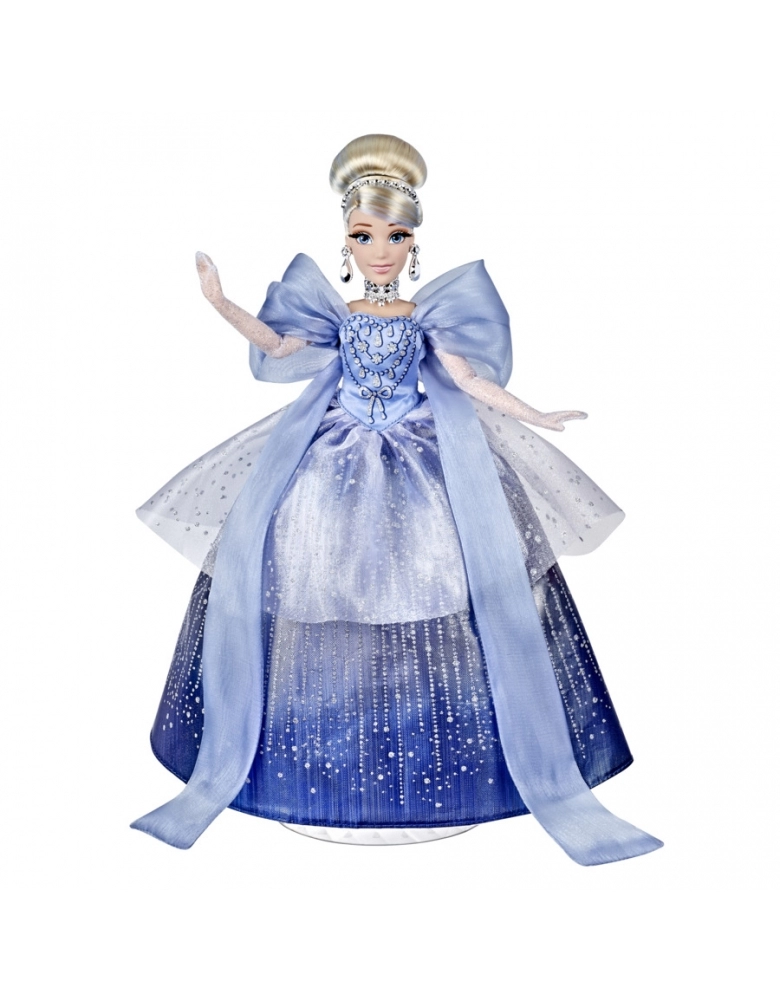 Desde 1950, Cinderela vem encantando gerações de fãs Disney. Esta Cinderela Edição Comemorativa de 70 Anos celebra este inesquecível legado, apresentando esta adorada princesa Disney com um vestido de festas de final de ano refinado e atual. A princesa da Disney Cinderela está pronta para a época do Natal. Os fãs vão amar o toque especial contemporâneo desta série de bonecas de suas personagens favoritas. Cinderela brilha como neve recém caída com este lindo vestido azul e prateado com detalhes