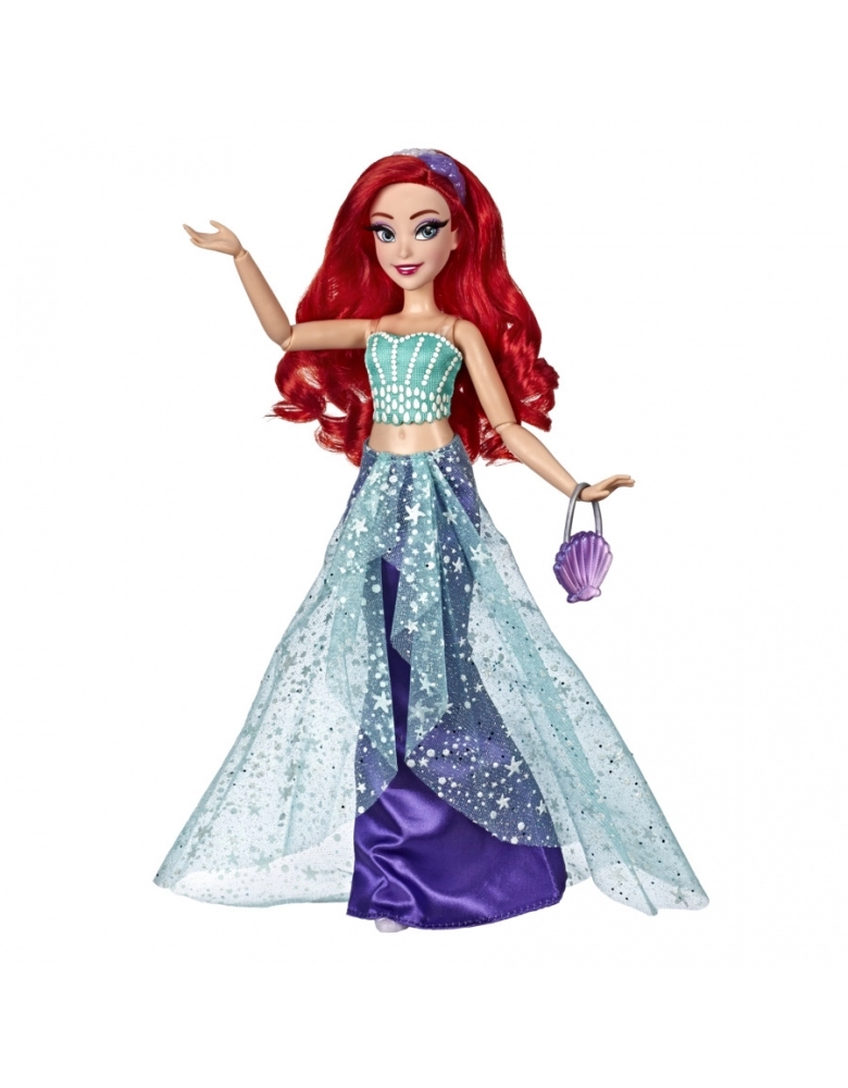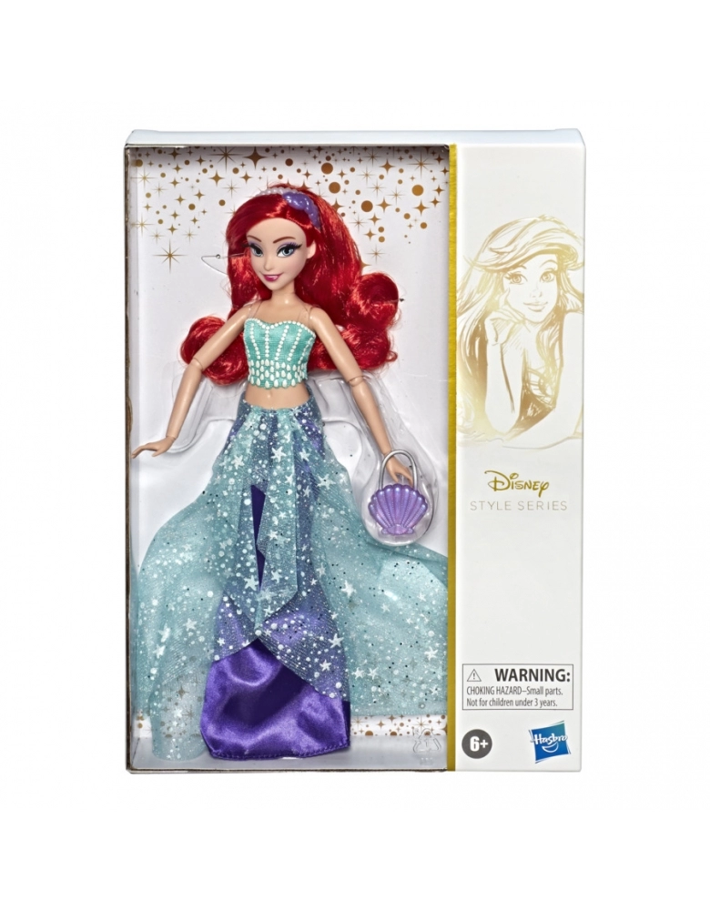 Estrelando a linha Disney Style Series! A querida Princesa Ariel da Disney está saindo do cinema e entrando no mundo moderno com um vestido lindamente projetado que mistura a elegância contemporânea e seu estilo icônico do famoso filme animado, A Pequena Sereia. Sua roupa e acessórios são inspirados em um tema submarino com uma paleta de cores complementares de verde e roxo. Fãs vão se encantar com essa boneca deslumbrante, lembrando-se da cena do filme quando Ariel anda majestosamente para fora