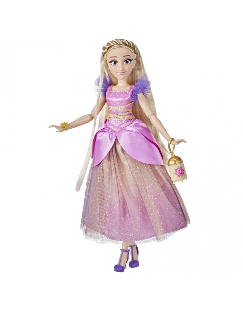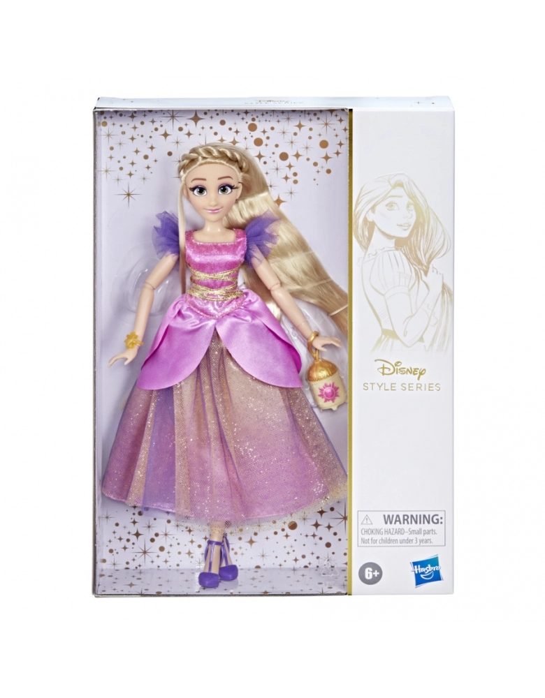Todas as atenções se voltarão a esta linda boneca Rapunzel com sua deslumbrante roupa com um toque contemporâneo inspirado no mundo dela. O seu exuberante vestido roxo, inspirado no estilo camponês, possui corpete cruzado e ombros bufantes, além de detalhes florais inspirados na mágica flor dourada de sua história. Para completar o visual, sapatos removíveis, belíssima bolsa dourada floral e um bracelete encantador. Seu estilo natural e encantador irá lembrar os fãs da beleza e coragem de Rapunzel em Enrolados da Disney. Os fãs podem se divertir com outras bonecas da Disney Style Series. (Vendidas separadamente. Sujeitas à disponibilidade.)